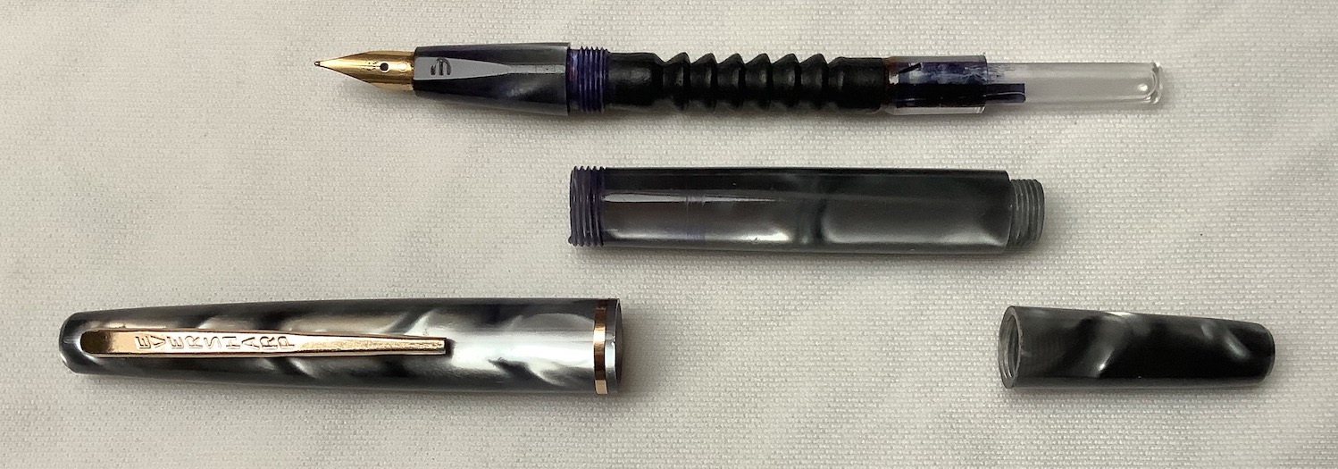 Penna davvero molto interessante, mai vista una prima, ed in effetti grida "produzione francese". Ed è possibile che lo sia dato che Parker aveva una produzione in Francia, che potrebbe aver realizzato questo modello.