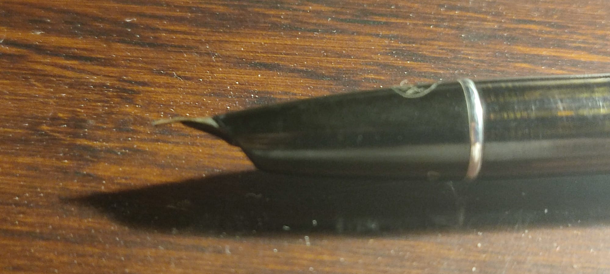 dalle ulteriori foto ancora non capisco bene se il pennino è a posto, forse ha preso una botta ed è stato raddrizzato (si nota una sorta di angolo). Il difetto in scrittura sembrerebbe dovuto a disallineamento dei rebbi, come mi è sembrato di cogliere malgrado le foto.