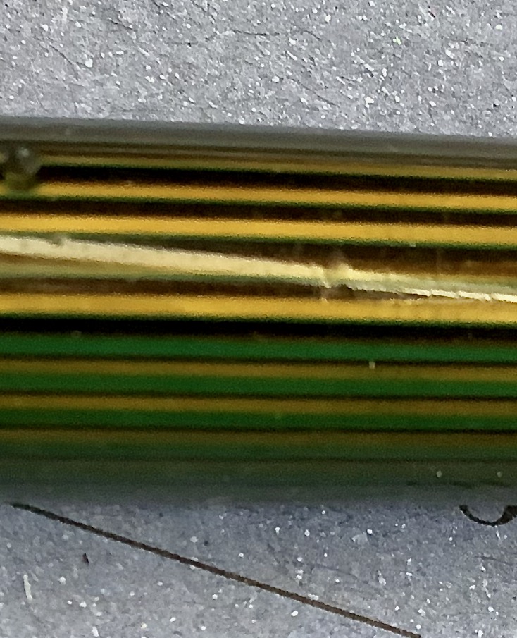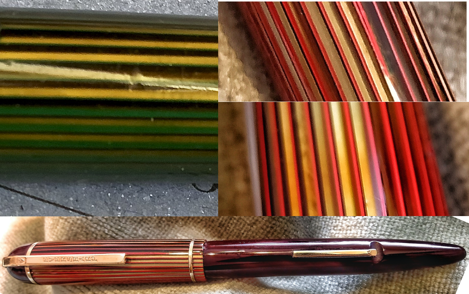 Esatto Esme. A ore tre del cilindro in celluloide , nella seconda foto, si vede la zona di giunzione . L'incollaggio veniva eseguito alla temperatura di rammollimento della celluloide e con un non meglio specificato solvente (così riportano i brevetti Wahl Eversharp (forse a base di acetone ?).