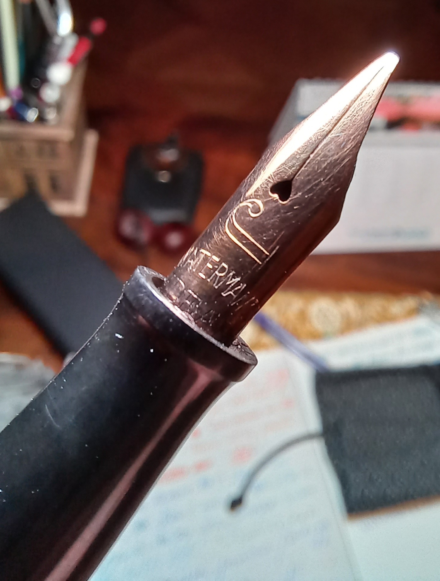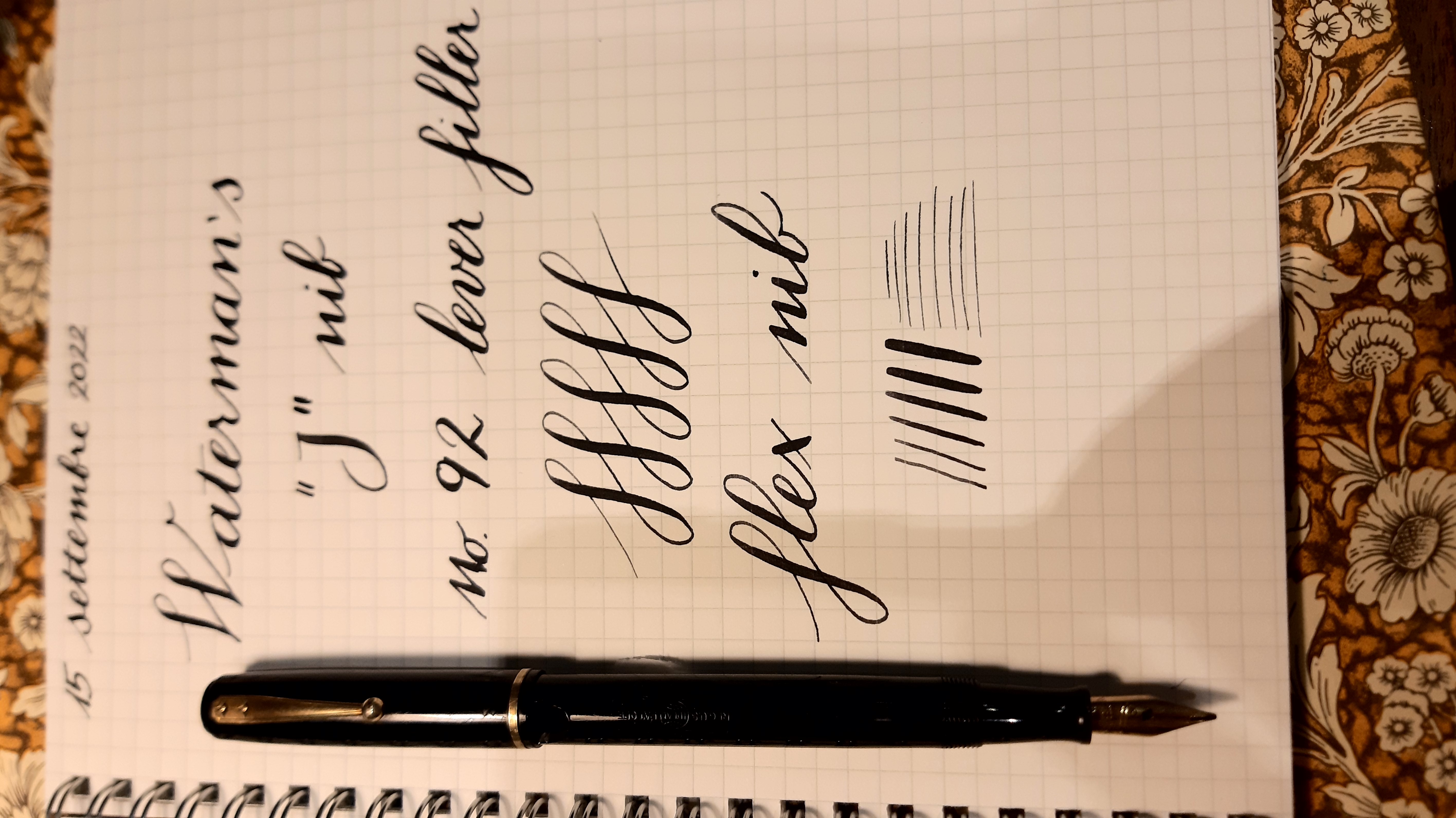 Ho la fortuna di essere incappato in un J nib montato su una Waterman's 92. Purtroppo sono foto di alcuni mesi fa. Devo cercare la penna per maggiori dettagli. Il pennino è fantastico nell'uso, come peraltro molti pennini Waterman dell'epoca. Appena rintraccio il nascondiglio della penna vi fornisco ulteriori dettagli. Da quello che scrissi a settembre 2022 deduco che ne ero entusiasta.