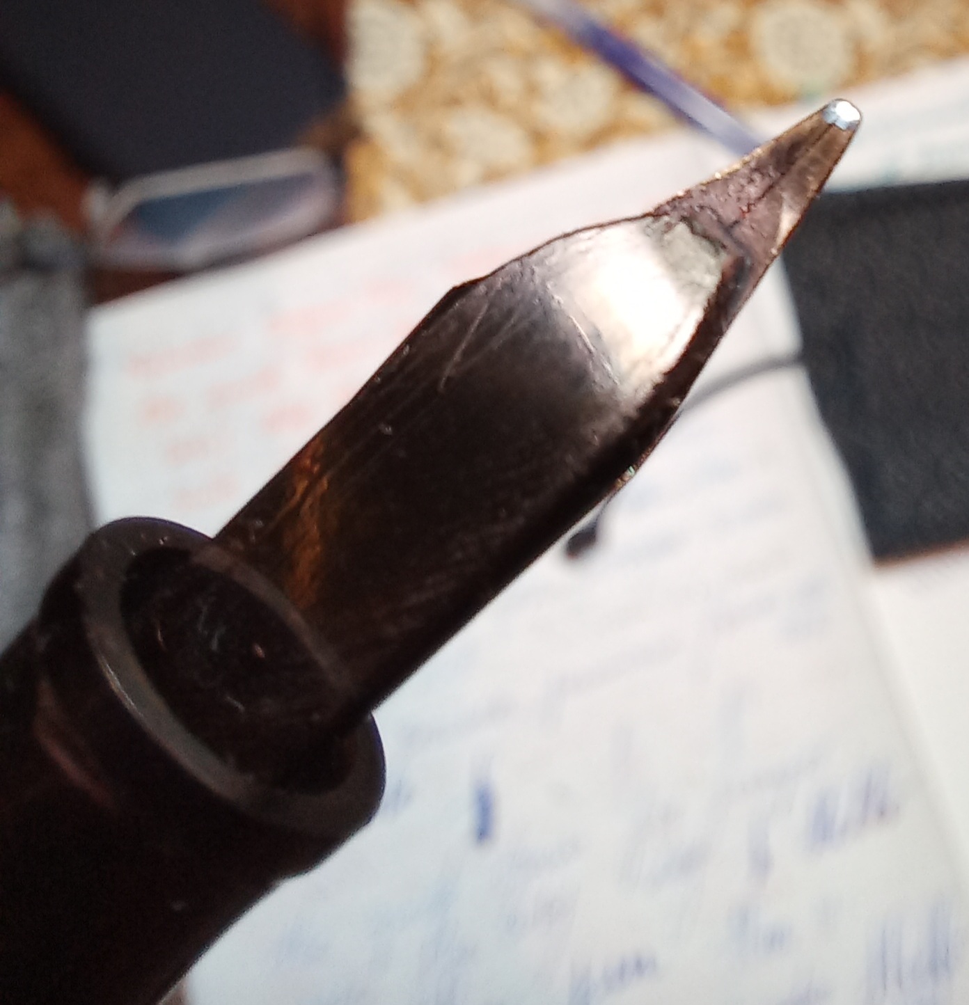 Quello che secondo me caratterizza il pennino è la quantità di rivestimento delle punte (tipping material), superiore alla media e tale da renderlo meno "spigoloso" e più morbido in scrittura normale, con caratteristiche quasi "stubbish".