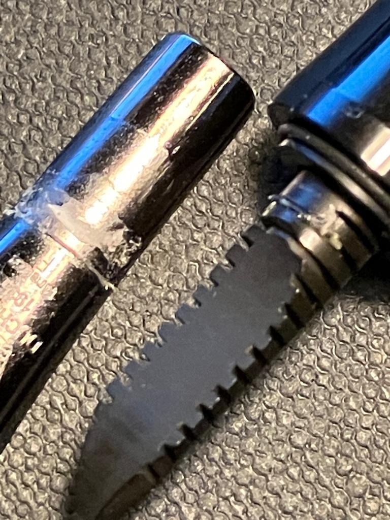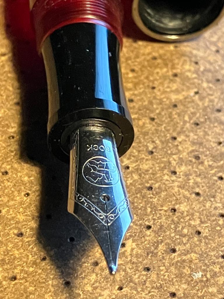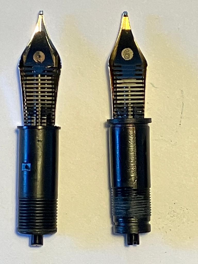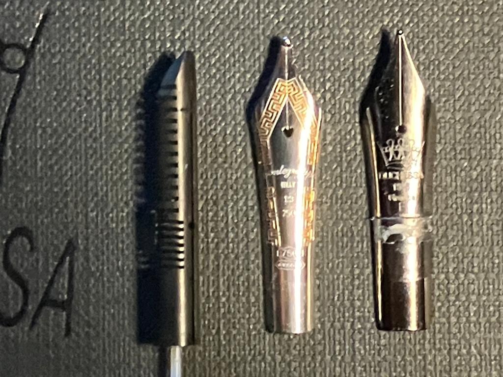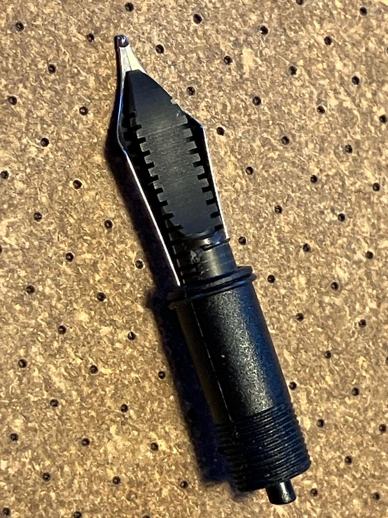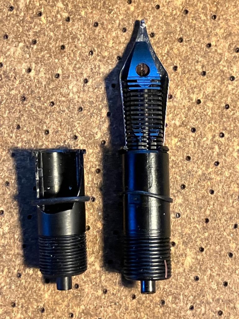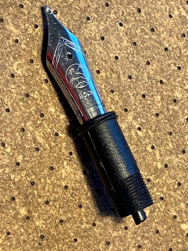 5) per coloro che hanno avuto problemi con alimentatore e pennino (per non parlare del sottoscritto che ha rotto il collare), la possibile strada è smontare il collarino originale (che è stato svasato per accogliere i pennini in dotazione, e quindi inutilizzabile per altri pennini), sostituirlo con un collarino Stipula, completo del suo alimentatore, e inserire un pennino size 6. Un gruppo completo Stipula potrebbe essere la soluzione (ma dato che i collari sono dichiarati Jowo compatibili anche un Jowo - solo il pennino - potrebbe essere adatto). Inoltre dato che un gruppo (collare-alimentatore-pennino) completo Bock si avvita perfettamente, anche quella è una possibile soluzione.