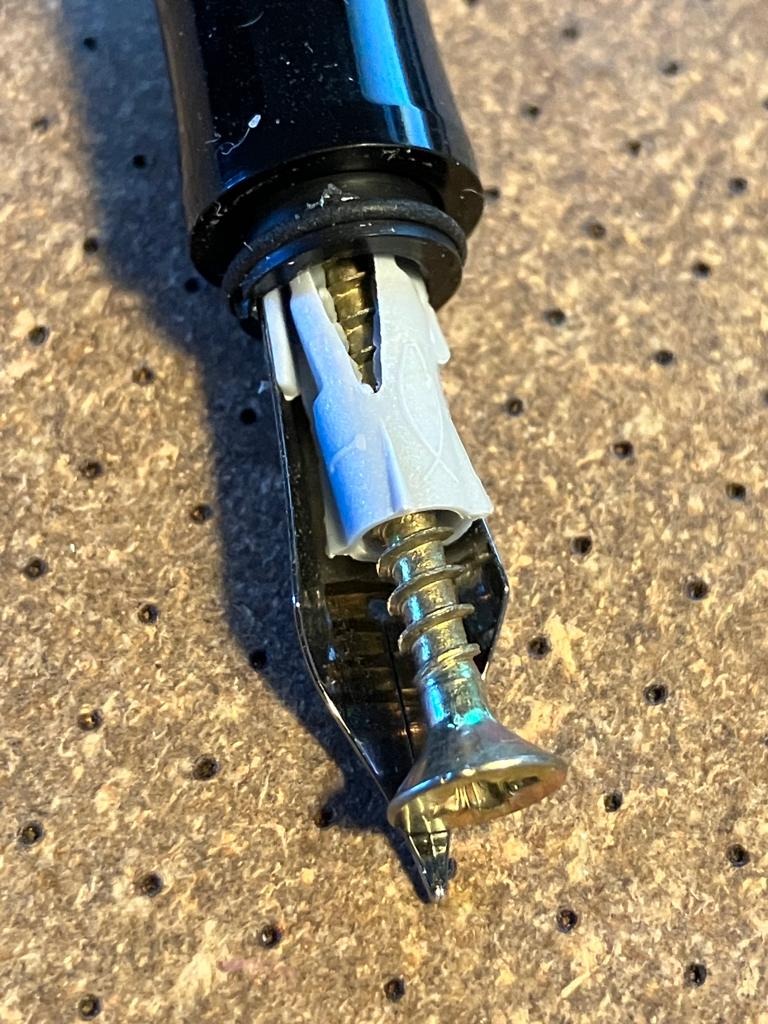 7) Una delle cose che ho provato subito, avendo i collarini, è stato montare un pennino (a caso, un Ancora #6 che ho lì da tempo) per fare prima di tutto la prova di funzionamento senza tubicino.
