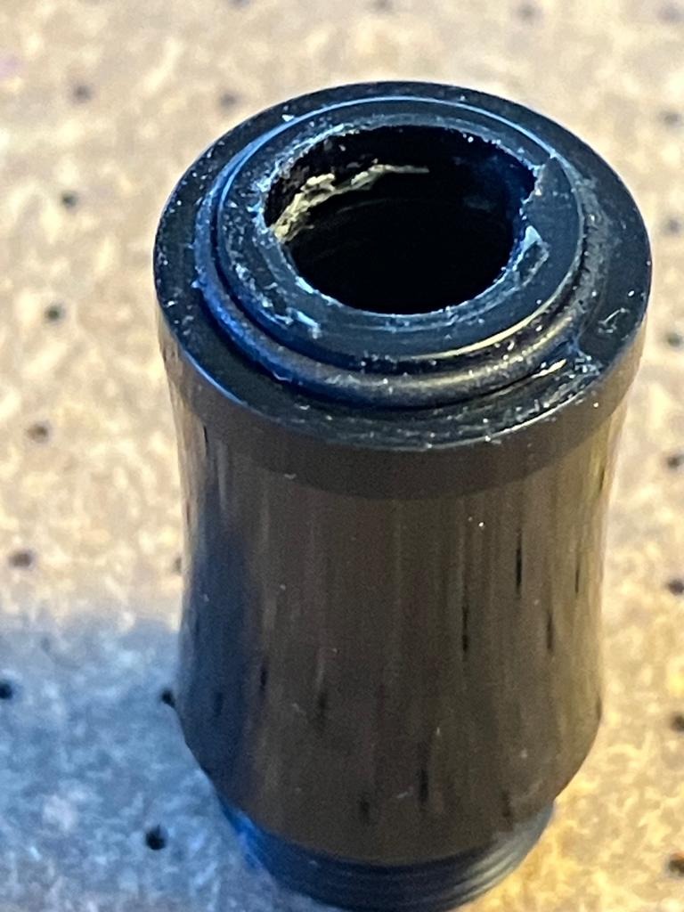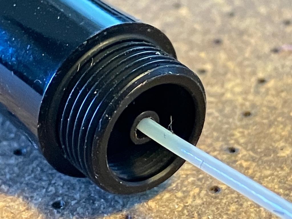 Quanto verificato nel punto 6) mi intrigava, mi sono chiesto se forse basterebbe ri-inseire il tubicino nell'alimentatore in ebanite, cambiando quasi nulla rispetto al progetto originario. Ho provato, primo risultato negativo, non solo la penna non si riempie correttamente, ma è soggetta a burping, il ché suppongo voglia dire che l'alimentatore è comunque troppo piccolo di diametro, lascia passare troppa aria e non c'è tenuta... (né in riempimento, né in scrittura). Per escludere che il problema fosse legato al riempimento quasi nullo, ho riempito la penna con una siringa, e ho riprovato.