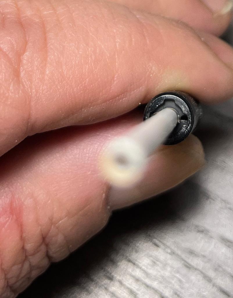 Mi sarei aspettato che rimanesse troppo lasco (l'alimentatore in ebanite sulla mia Duchessa ha diametro circa 5,5 mm), invece calza e sta in posizione! Farò delle prove per vedere come scrive.