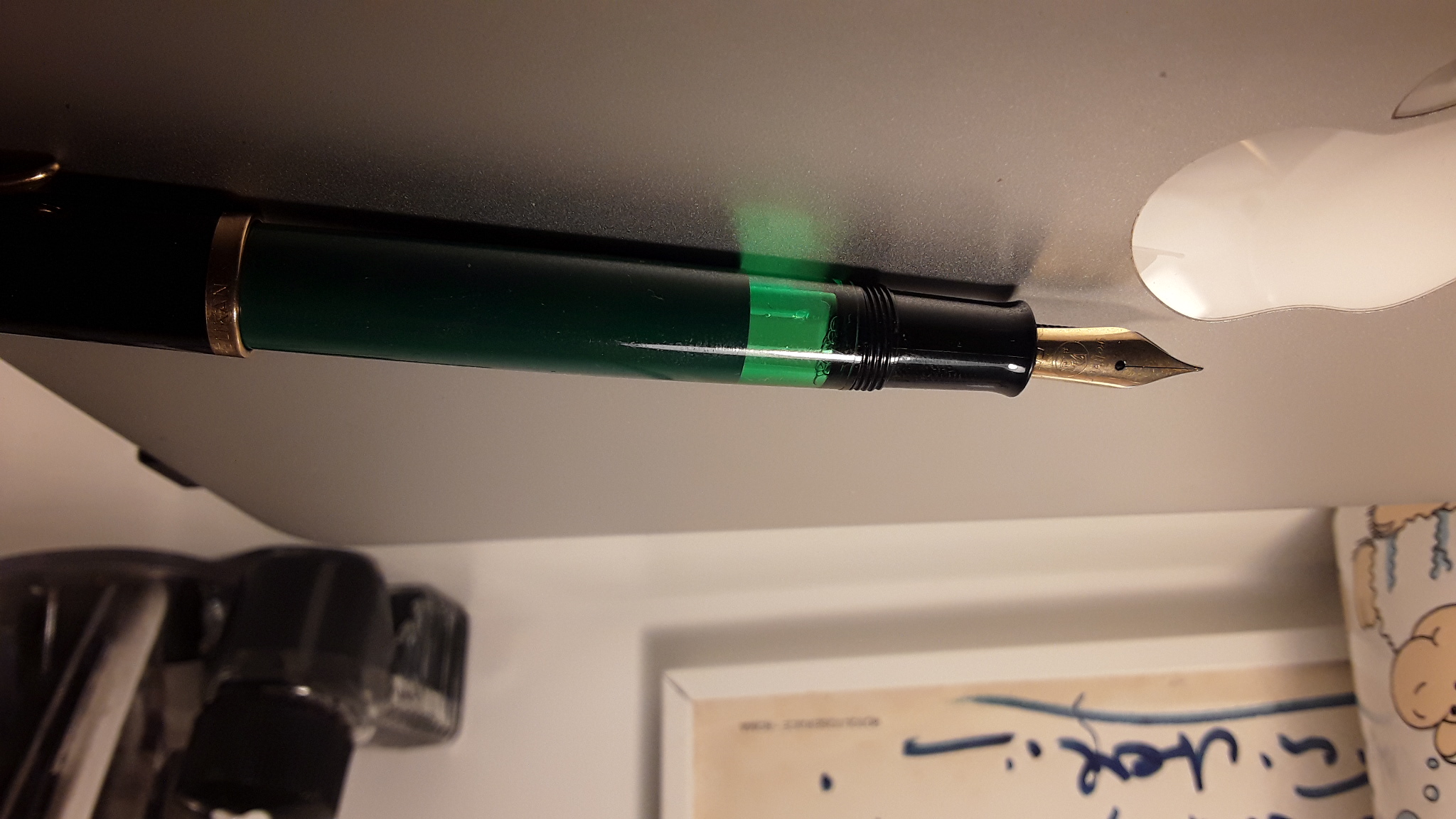 Sul pennino in acciaio, Pelikan EF. Il Cappuccio non riporta il logo Pelikan.