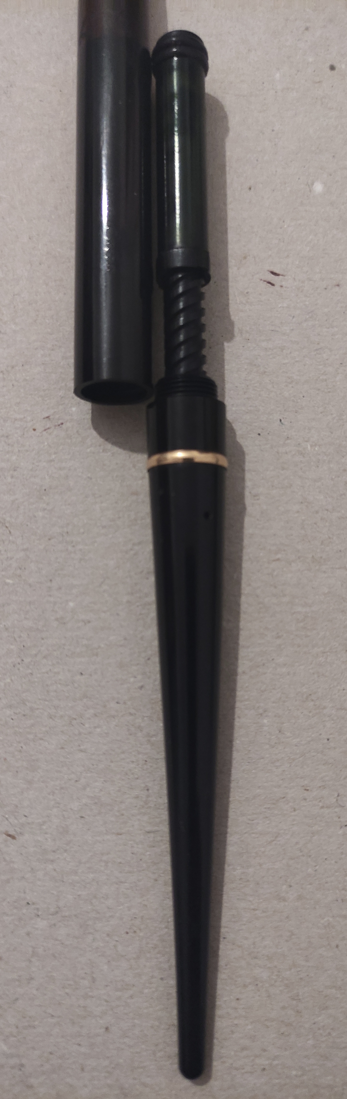 Anche sui miei c'è solo un anello metallico. Quando avevo scritto "(la filettatura è all'incirca a 1cm sotto l'anello metallico) " mi riferivo allo stiloforo in posizione di scrittura.balthazar ha scritto: ↑lunedì 4 marzo 2024, 18:04Credo che il mio sia un modello diverso dal tuo, ovvero il 583 Brev. 445846 e ha un solo anello metallico tra il codale e la parte fissa. Sai - o qualcuno sa - come smontare il tutto?MaPe ha scritto: ↑domenica 3 marzo 2024, 20:53 Pistone in alto (come quando hai appena effettuato una carica d'inchiostro). Sviti il corpo dello stiloforo tenendo pollice ed indice dove c'è l'anello metallico (la filettatura è all'incirca a 1cm sotto l'anello metallico) girando il corpo in senso antiorario. Se il sughero è "esausto" lo stantuffo uscirà da solo. Dove c'è il sughero, sulla sommità dello stantuffo, sviti la vite ed inserisci i due o-ring. Rimetti la vite, un velo di grasso siliconico sugli o-ring ed infili lo stantuffo nel corpo dello stiloforo. L'inserimento è obbligato, vedrai che sullo stantusso ci sono due "alette" e nella sommità del corpo due scanalature. Fai tutto con calma, dovrai spingere un po' e giocare con le posizioni dello stantuffo che alla fine risulterà quasi completamente abbassato (come quando si scarica la penna).