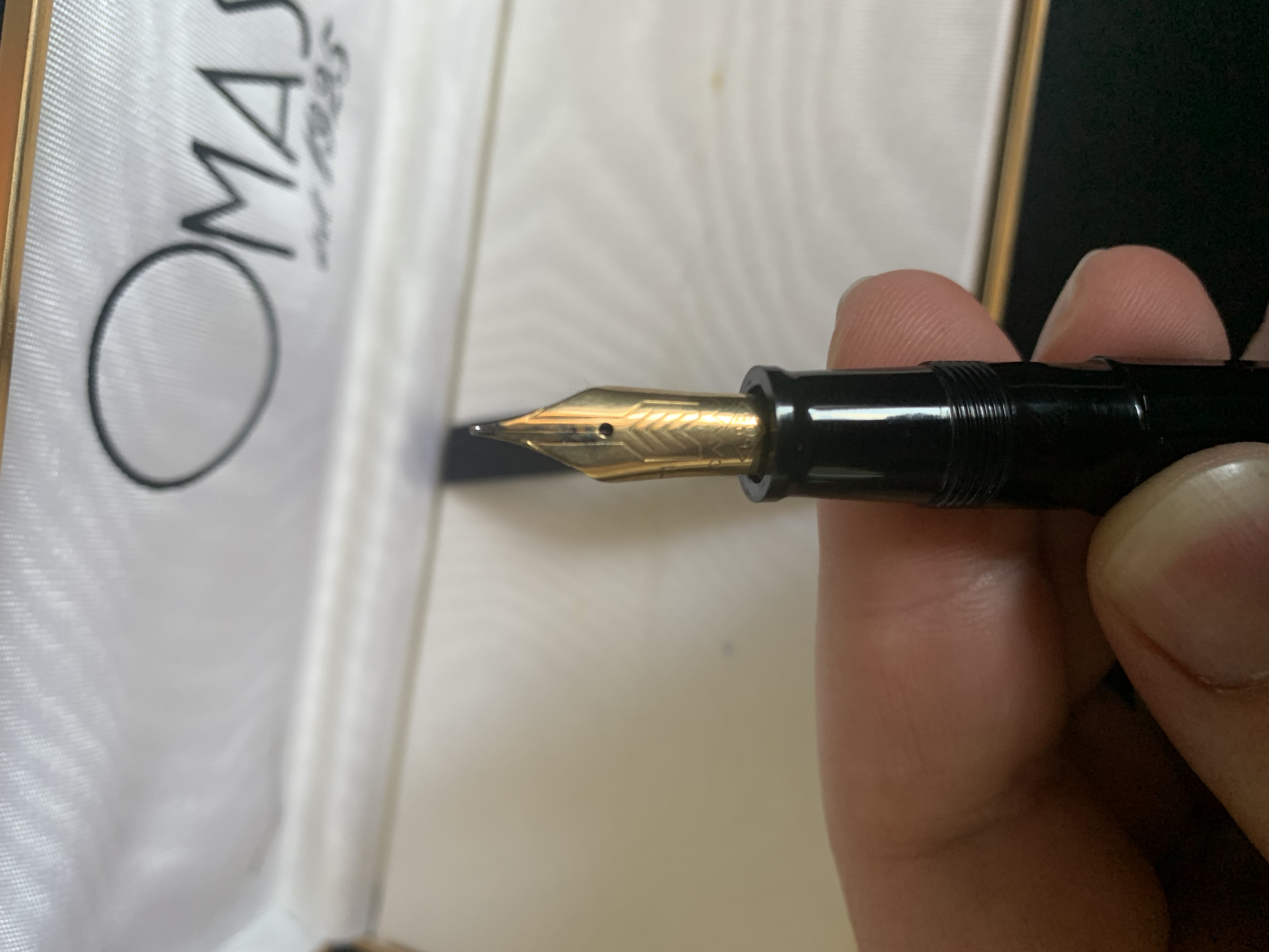 tra l'altro, per tua informazione, hai un pennino dal tratto fine (in genere i pennini Omas hanno la dimensione del tratto incisa sul lato sinistro del pennino, il tuo è marcato F per fine).