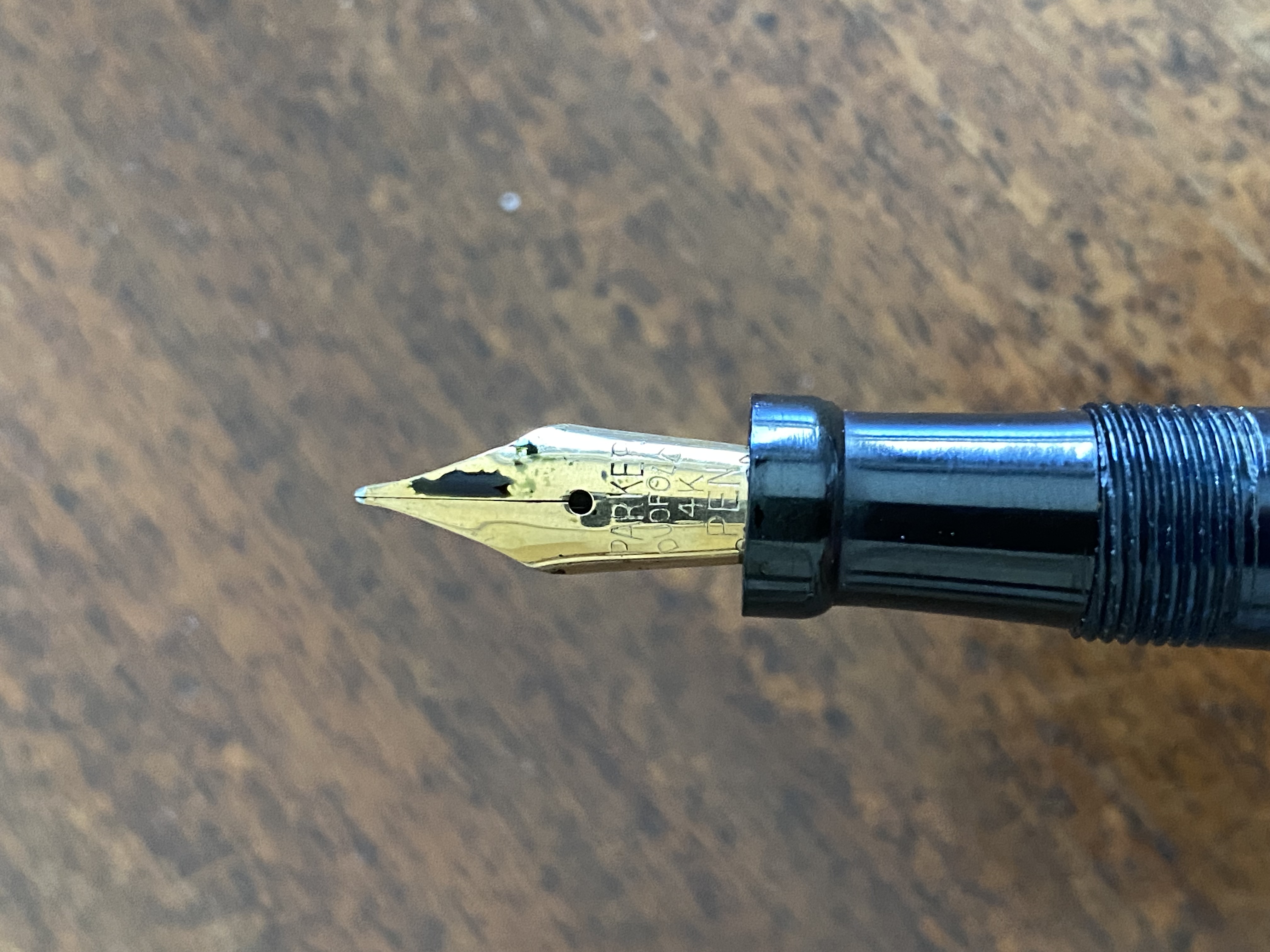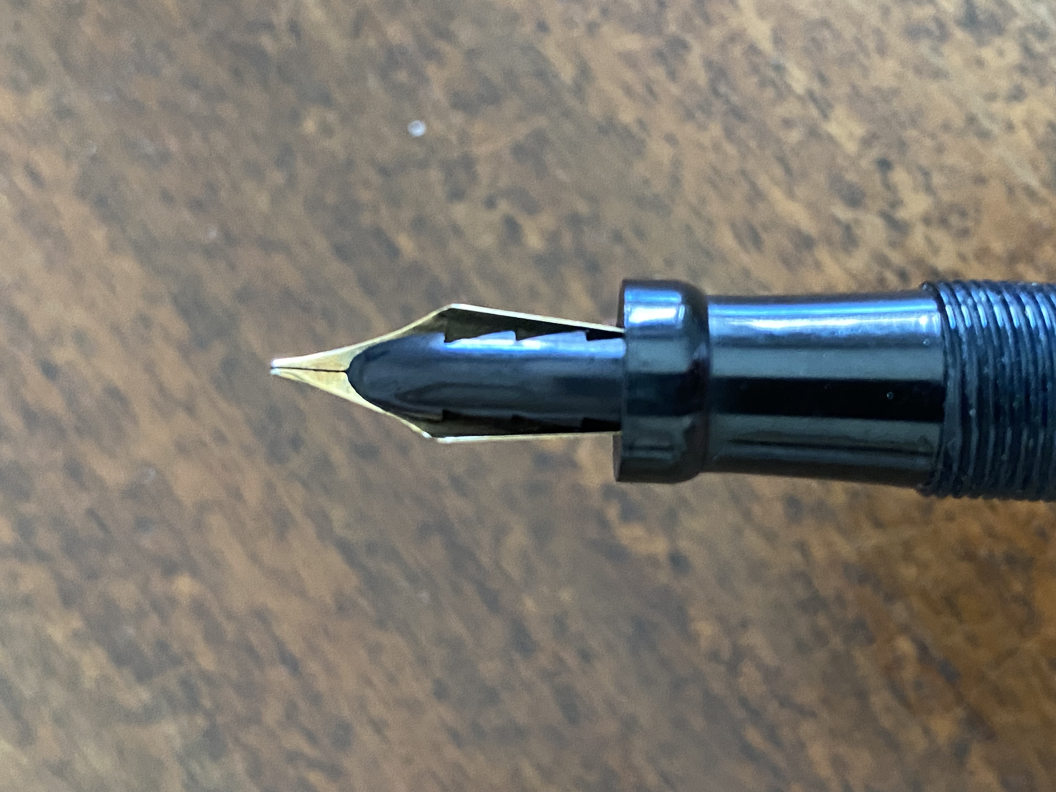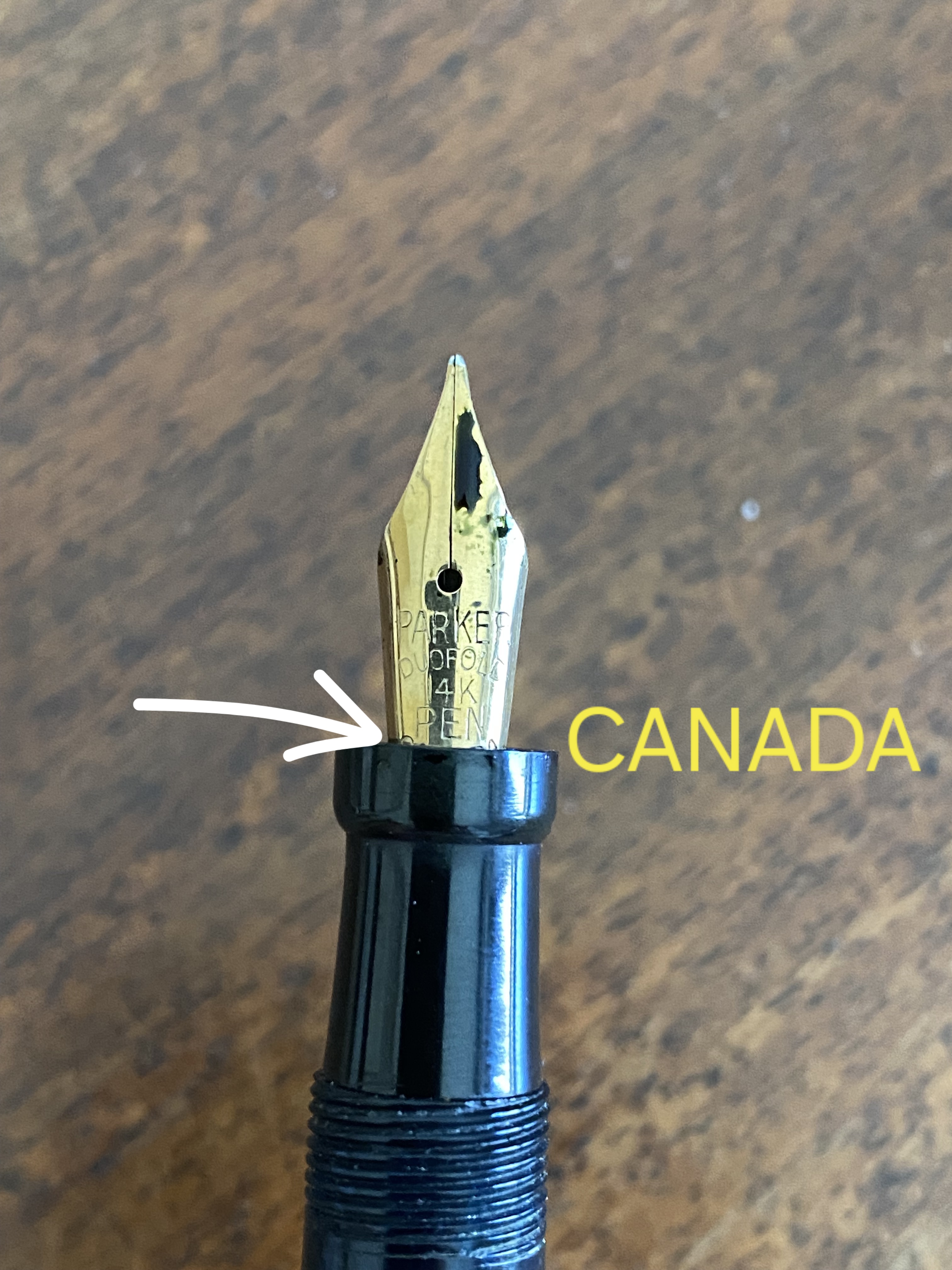 Non può non aver notato, infatti, che la tua penna prodotta negli U.S.A. (come si legge sul fusto) ora monta un pennino canadese... E di almeno 8 anni più recente rispetto al fusto. Vista la disposizione delle scritte, io comunque direi che è addirittura quello del 1939. Nulla di grave, per l'amor del cielo, i pennini vanno e vengono, ma alcuni sono più raccomandabili di altri: purtroppo non c'è nulla di più "serio" di un hobby!