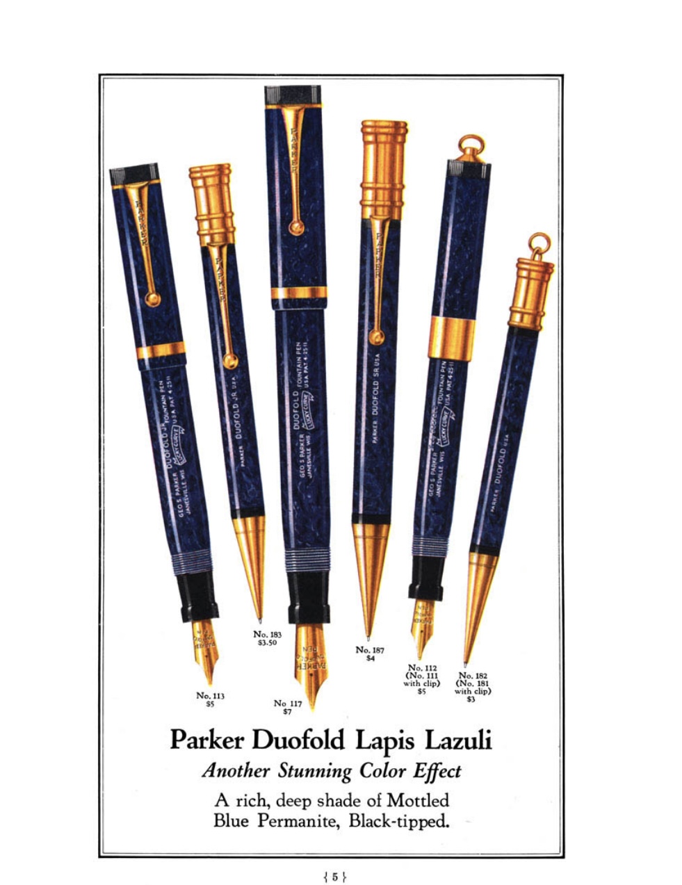 1922: Parker introduce la Duofold Junior e la duofold Lady. Entrambe portano aggiunta incisa la parola "Jr." e "Lady".