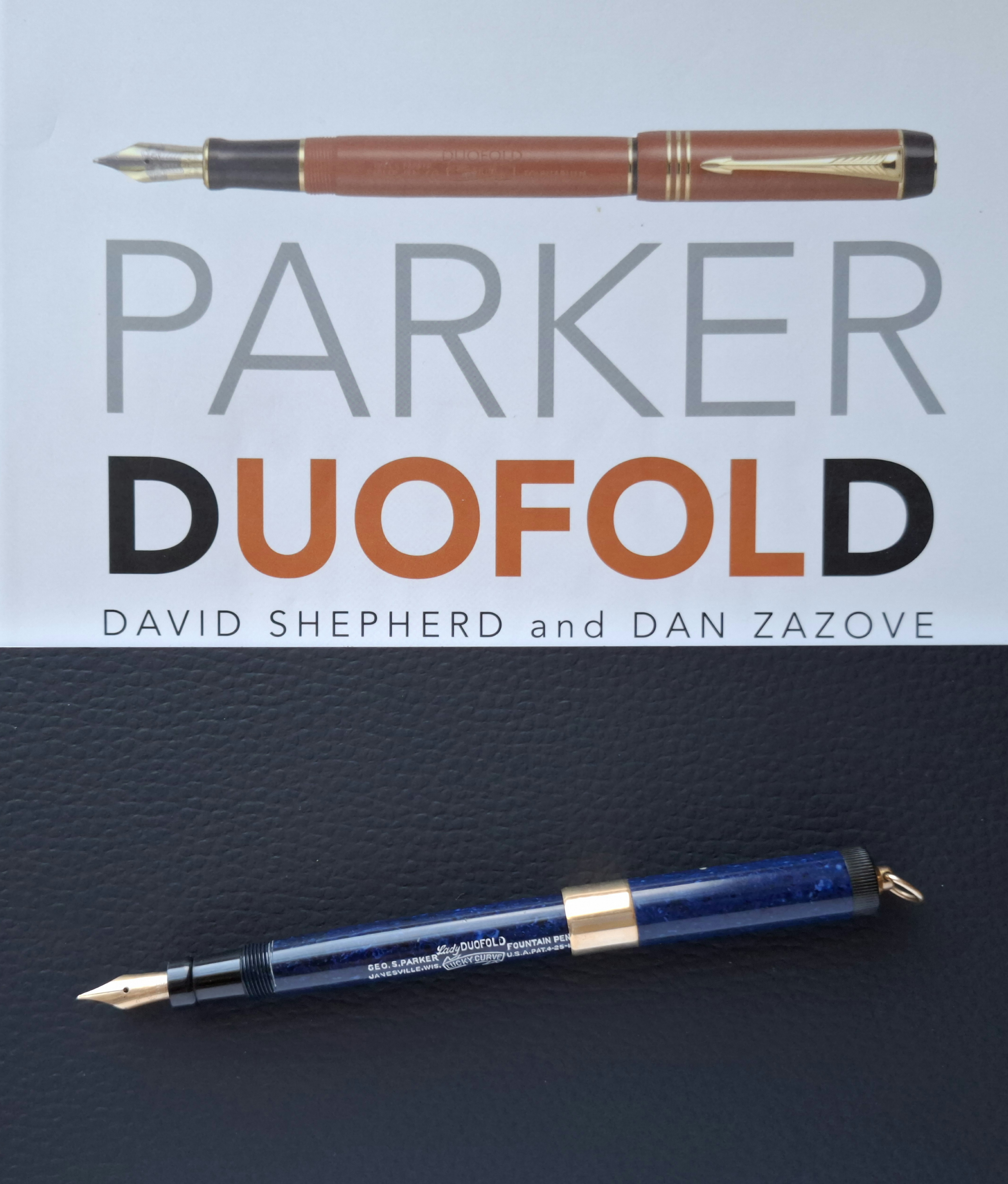 E chi è il mio informatore segreto? Se sei appassionato di Parker Duofold, non puoi fare a meno di procurarti la "bibbia" sulla materia (pubblicazione 2006, ristampa 2010, da cui è tratta anche l'immagine precedente), che qui sotto ti mostro con una mia Lady "blue on blue" identica alla tua: Certo, il libro cartaceo costa il doppio di una Lady Duofold sul mercato dell'usato, ma almeno si può studiare l'argomento senza girovagare per la rete.