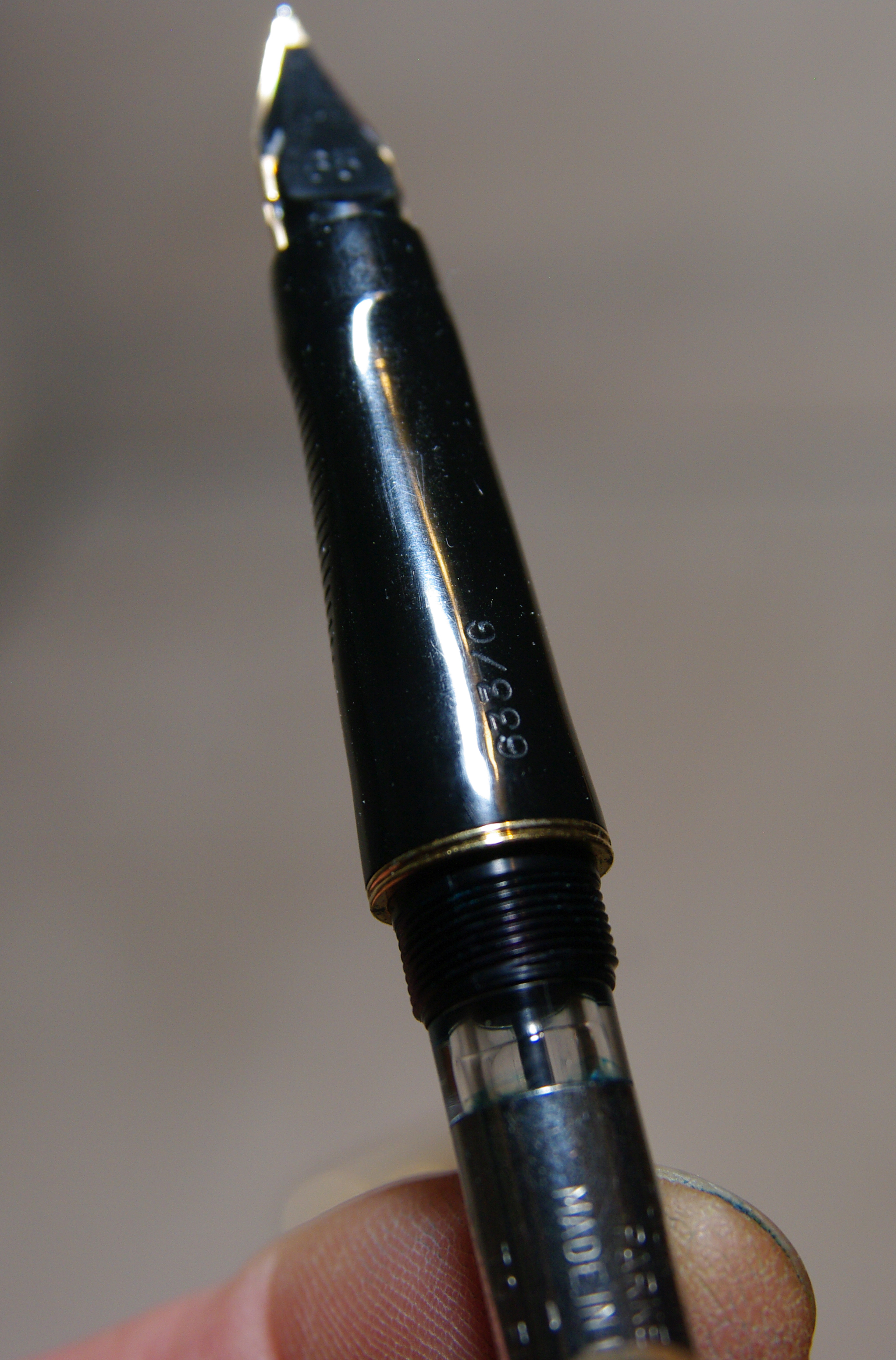 La penna è progettata così, per evitare di sporcarsi le dita.