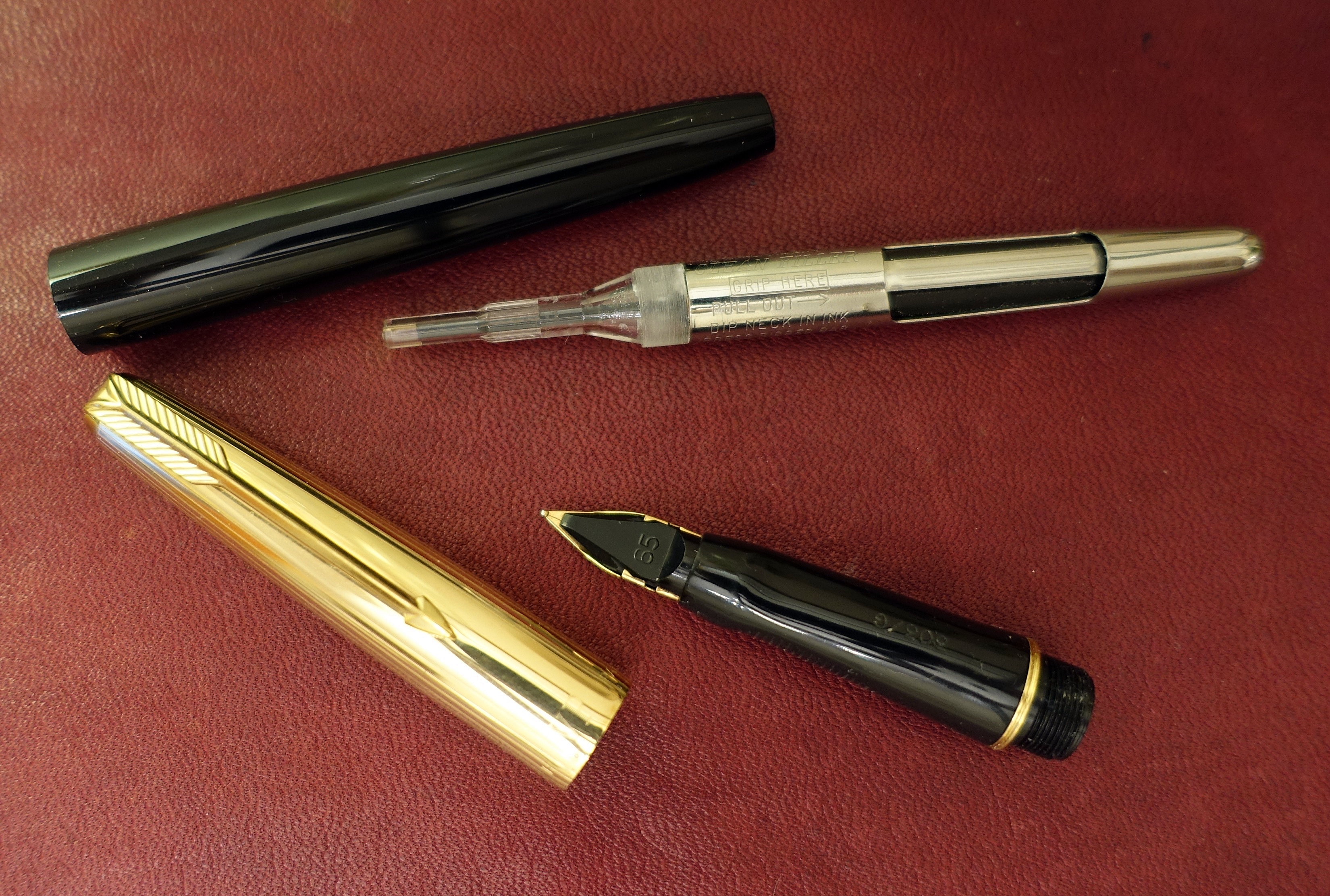 La 65 somiglia, ma ma ha di diverso il terminale del fusto e la sezione con pennino, questa somiglia a quello della 75 ma senza la fascetta .Però sotto all'alimentatore riporta il n° 65 la sezione ha la zigrinatura come le fascette USA ed il pennino ruota.