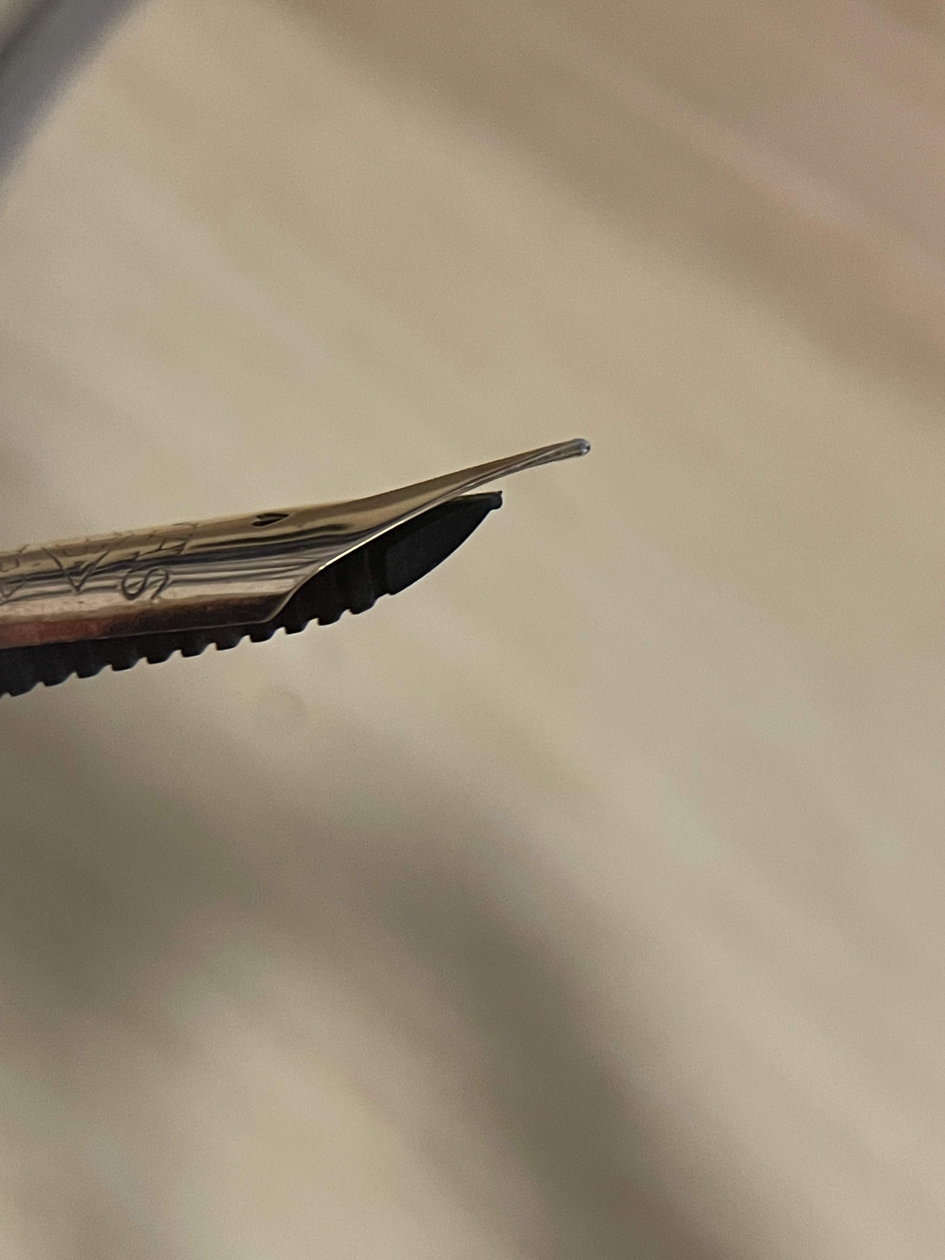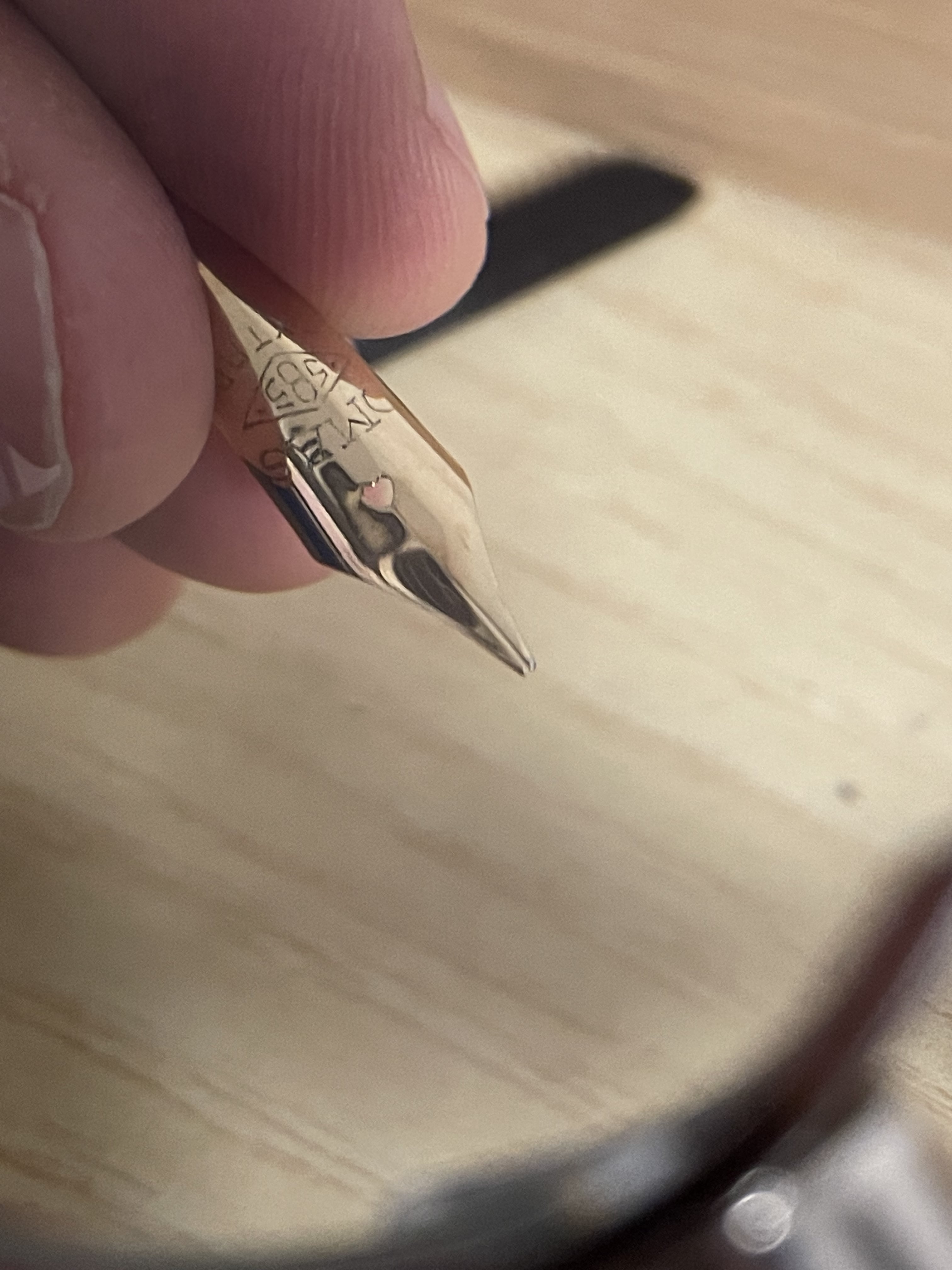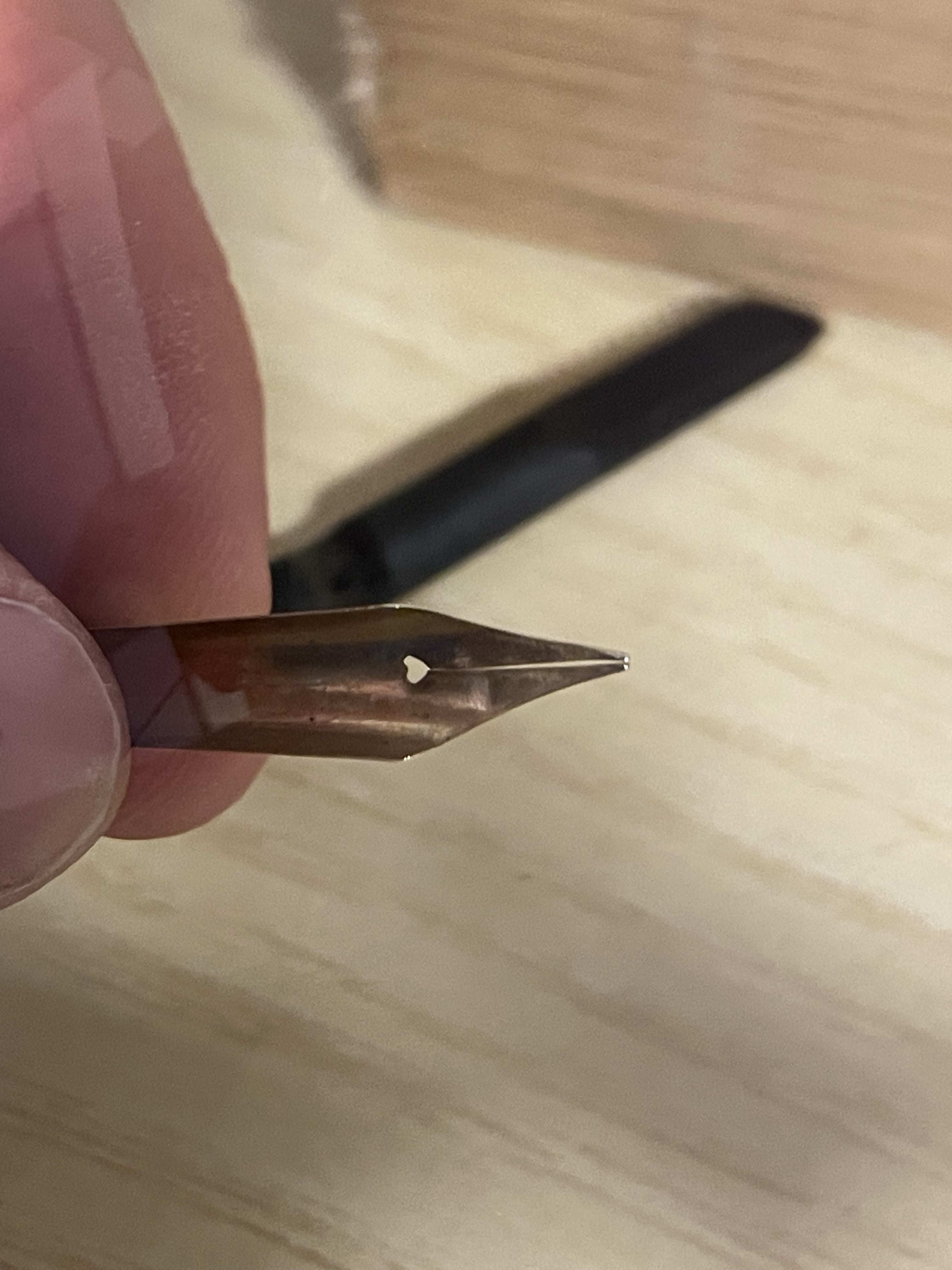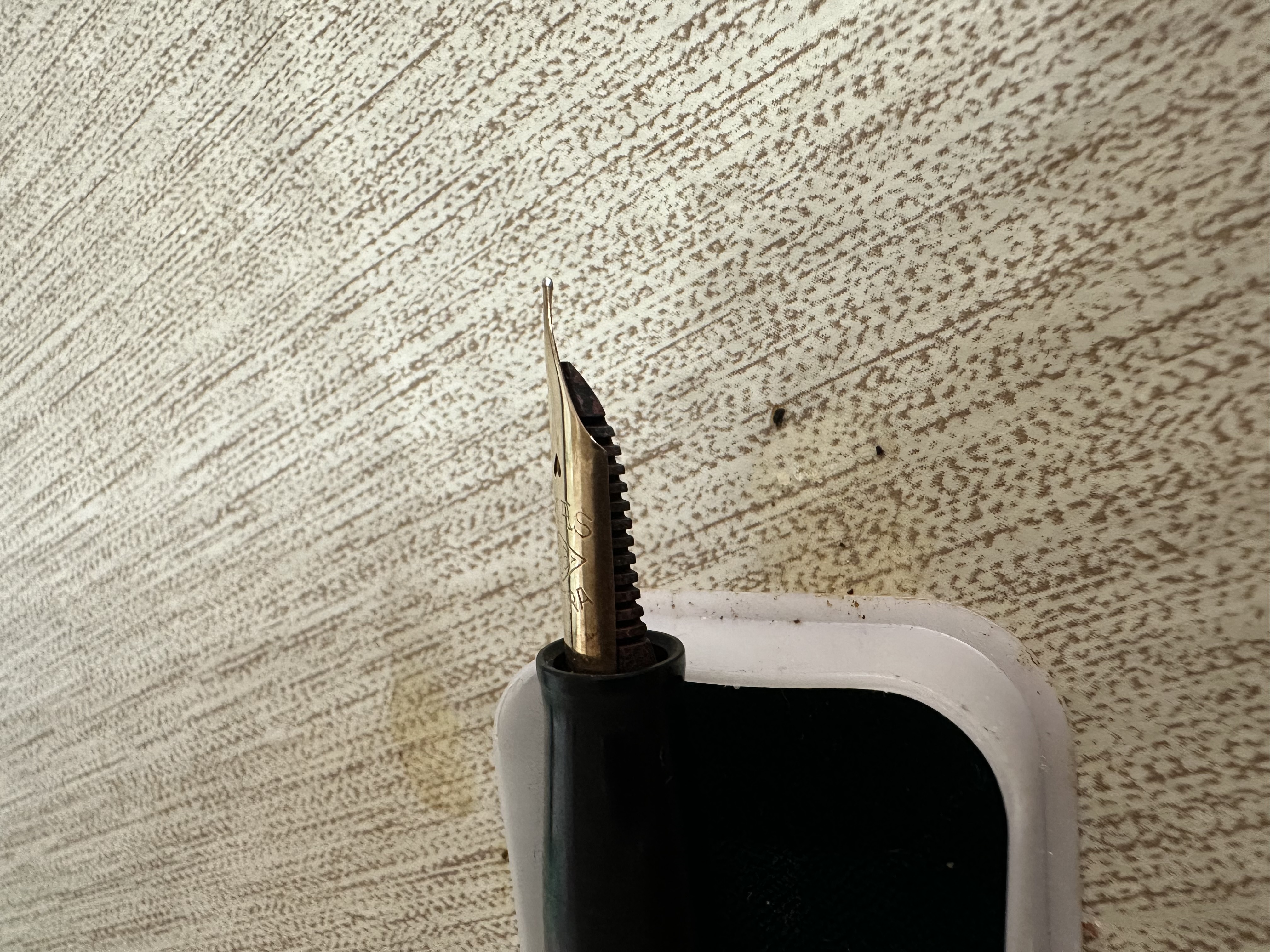 l'utente precedente del pennino è quello che gli anglosassoni definiscono "ham-fisted", traducibile suppergiù in "maldestro" seppure la definizione "pugno di prosciutto" rende molto meglio l'idea del come l'utente l'abbia realmente trattato.