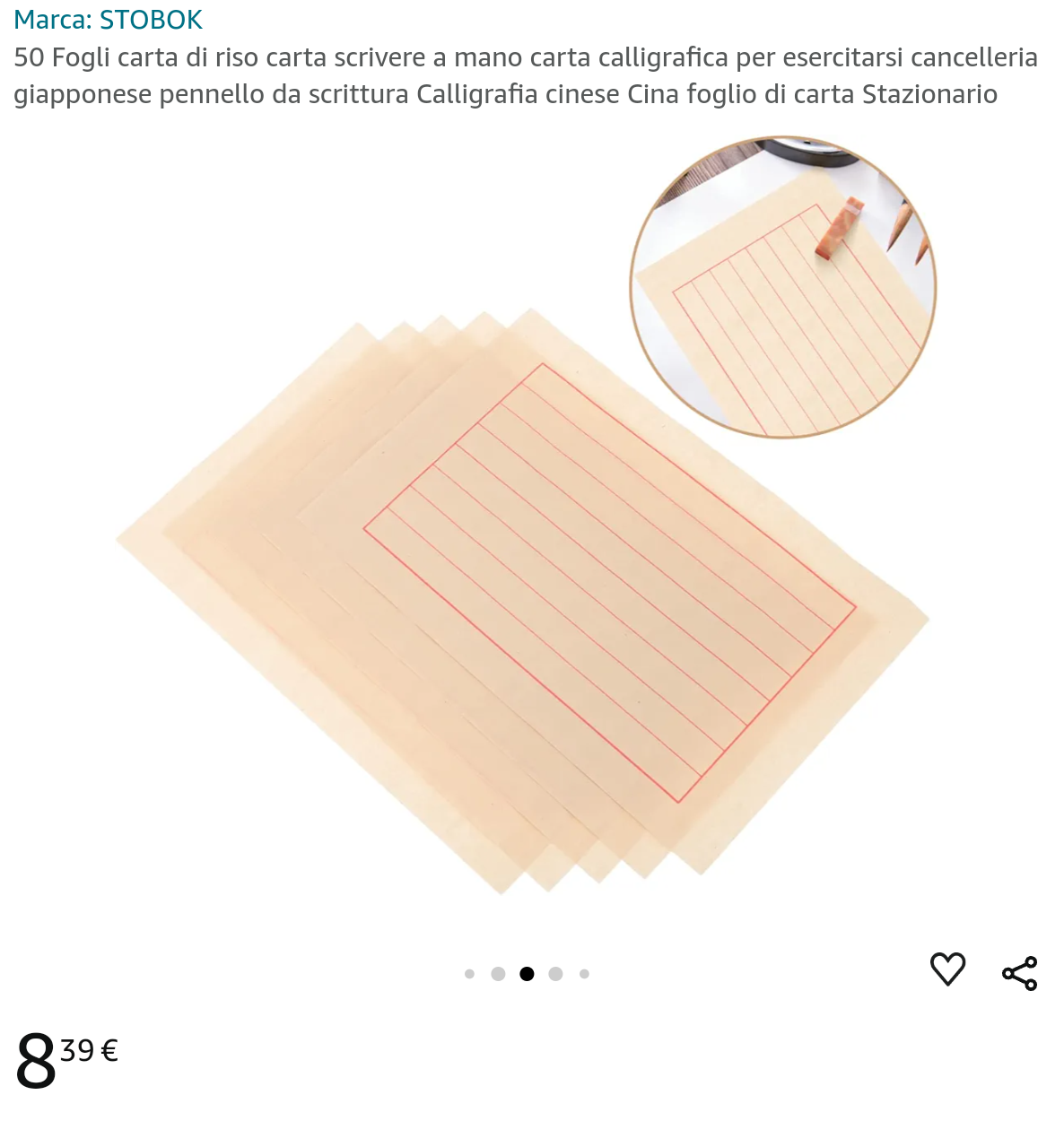 Sul noto sito di vendite online, ma anche sugli store cinesi, ho visto dei pacchi di carta di riso. Sul sito occidentale, pubblicizzato per la scrittura calligrafica.