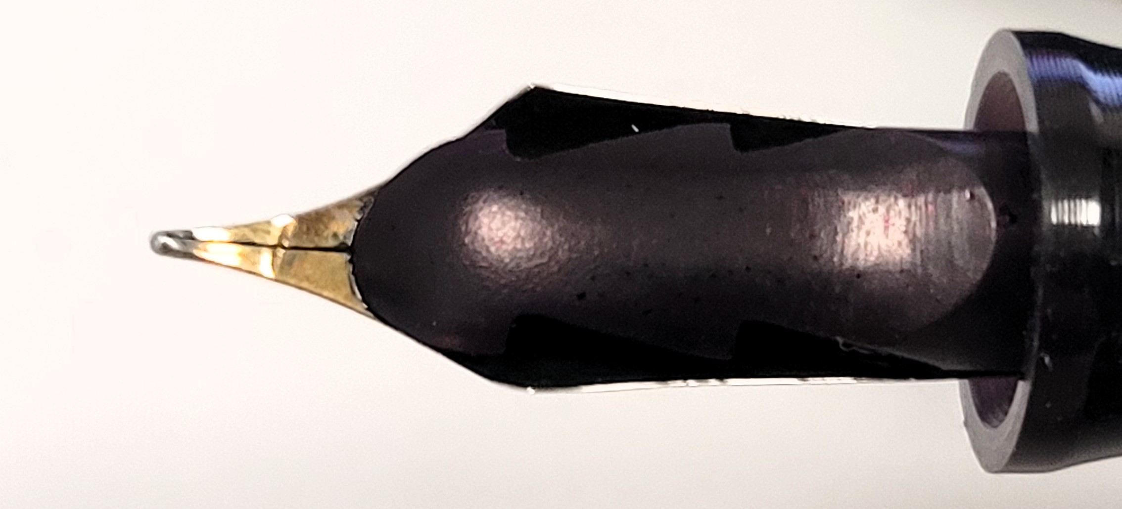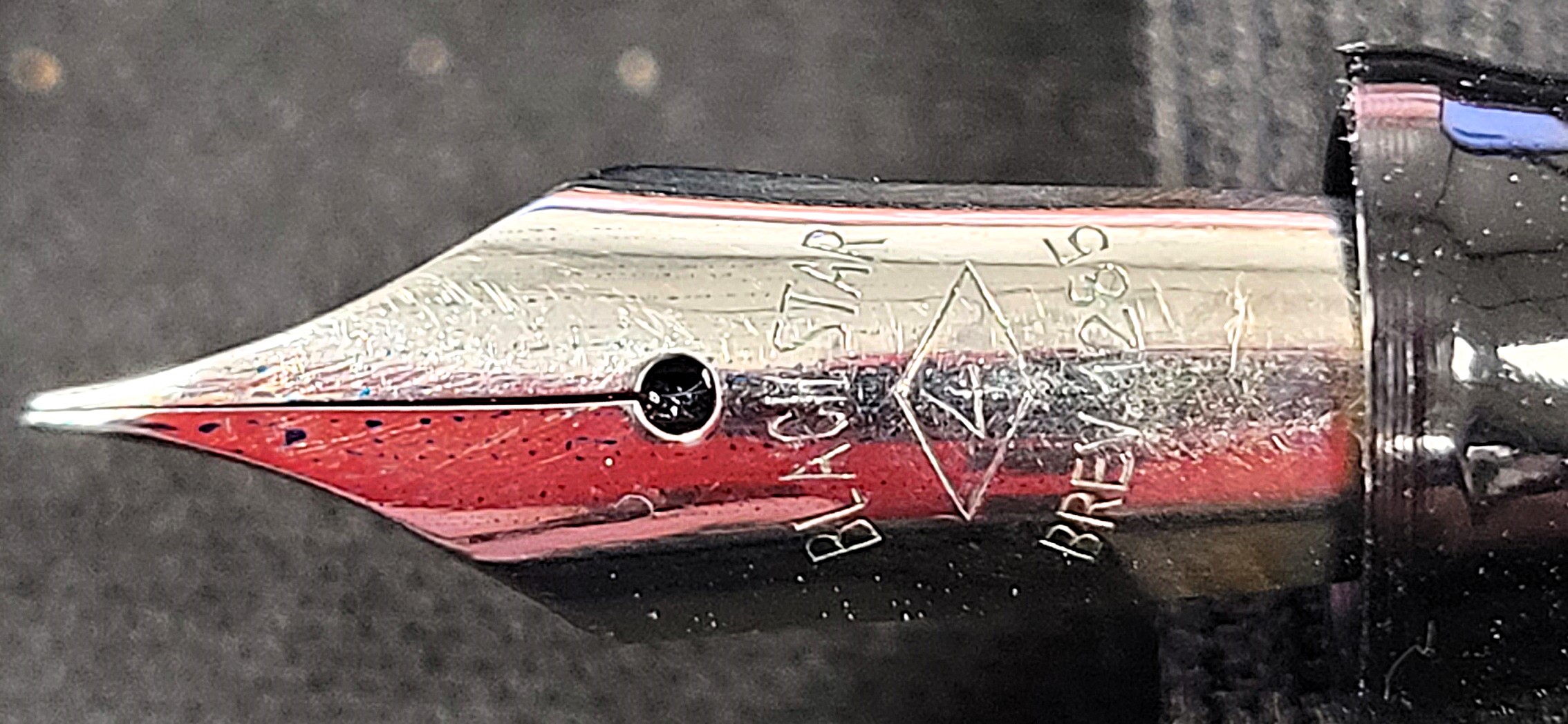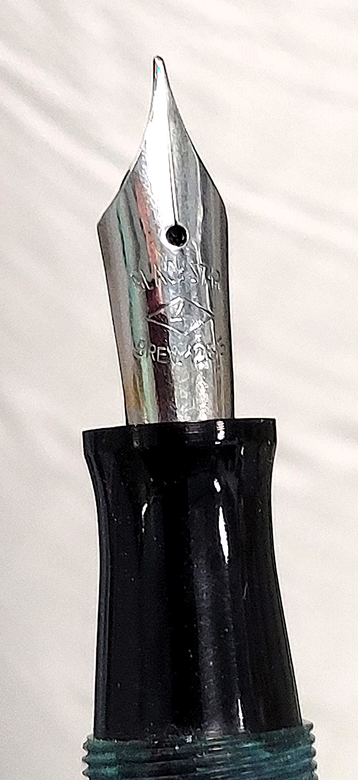Dotata di un pennino in acciaio molto flessibile che riporta le scritte BLACH STAR ed il numero <4> racchiuso in un rombo (probabilmente la misura del pennino) e la scritta Brev.1285, sarebbe interessante sapere in cosa consista tale Brevetto. Nel complesso è davvero una bella penna, restituisce un’ottima sensazione di solidità e piacere d’uso complici le generose dimensioni ed il pennino scorrevole e flessibile nonostante abbia quasi un secolo d’età. Sono molto felice!