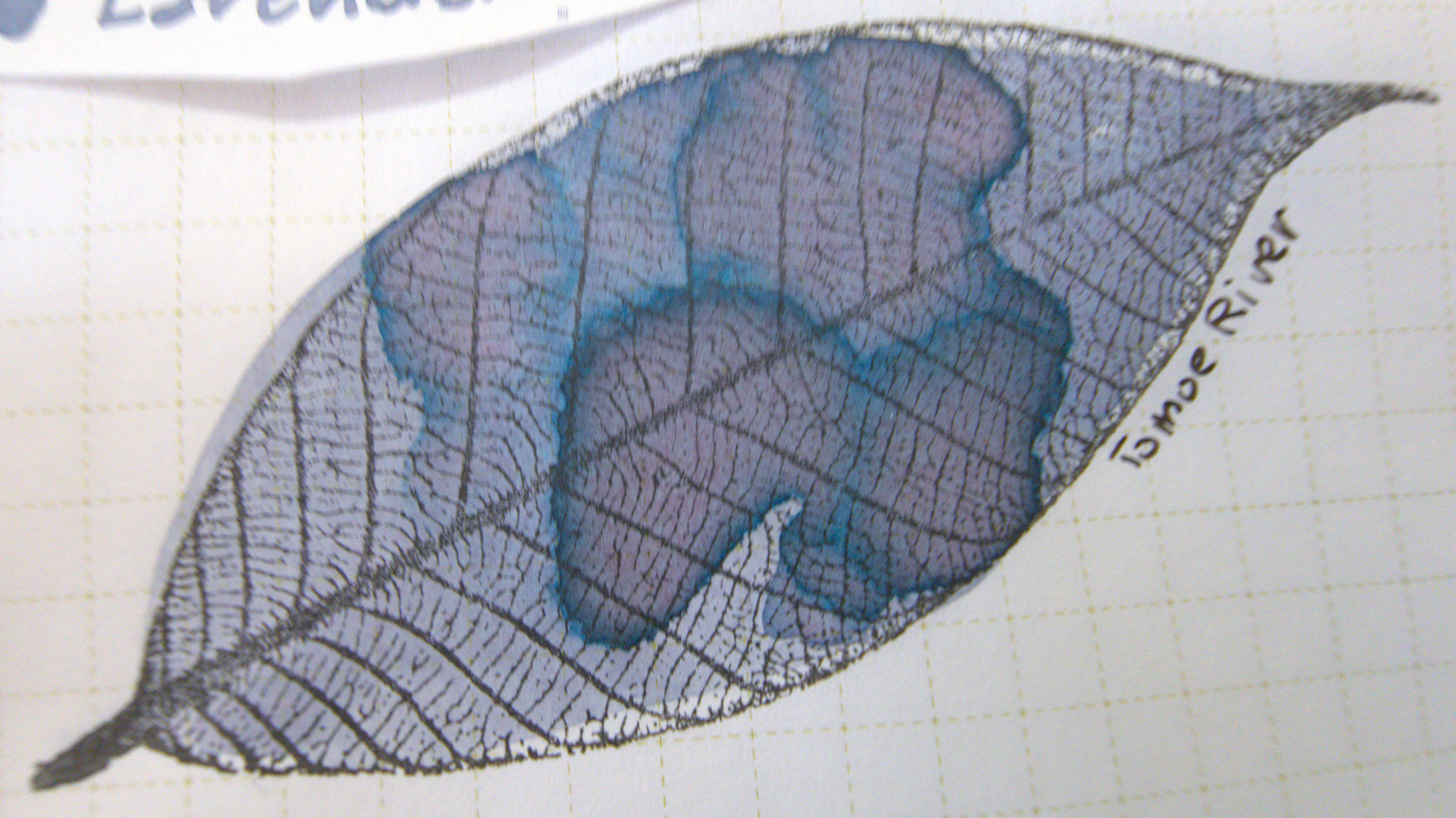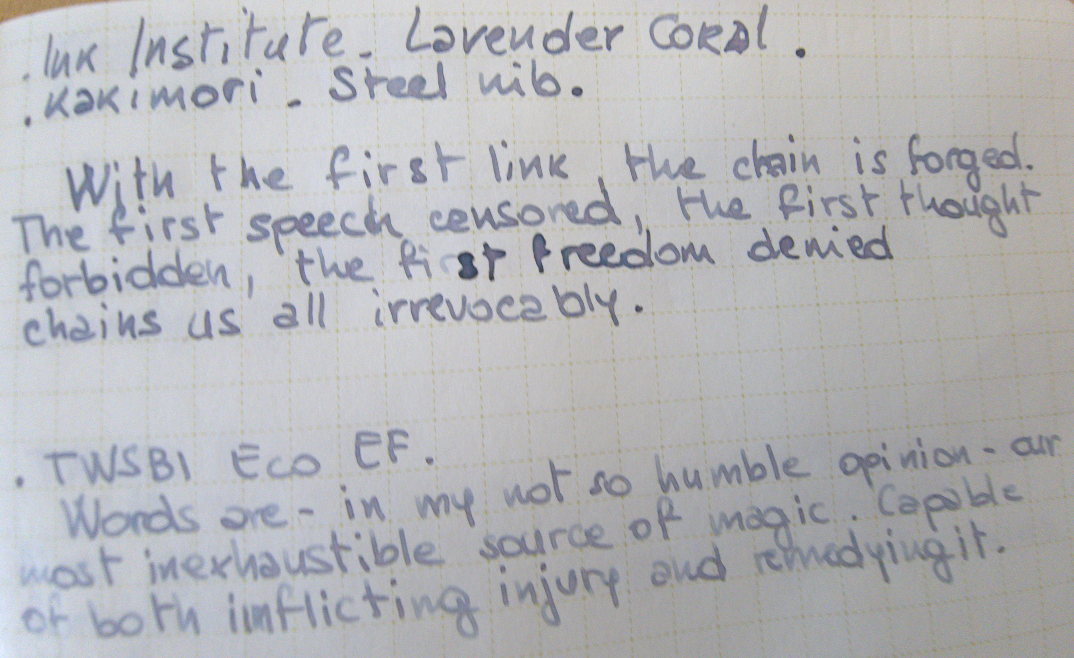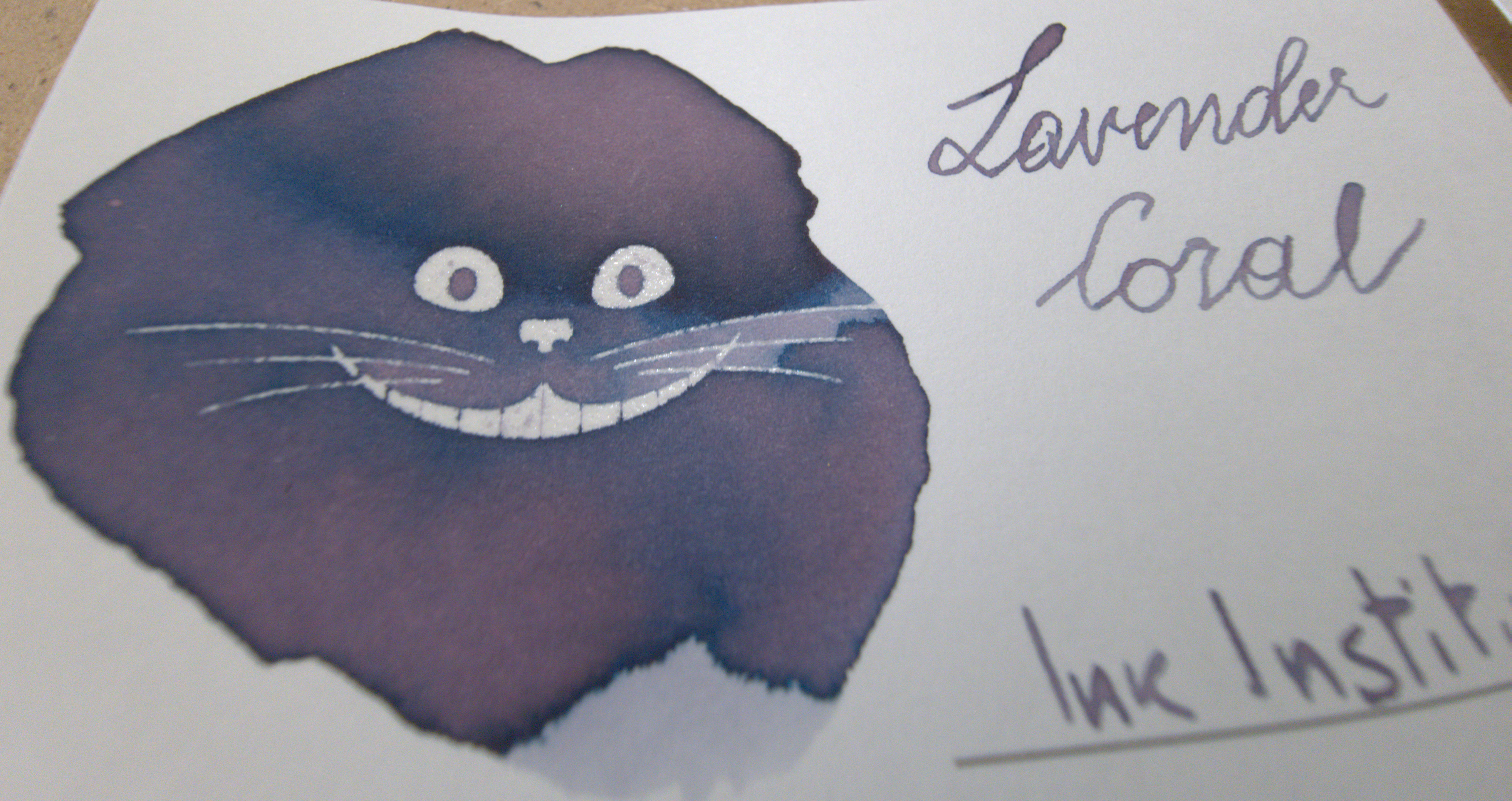 Quando l'ho usato, mi ha ricordato moltissimo Mystic Storm di Robert Oster [QUI: viewtopic.php?t=33272 ], tanto che ho deciso di provare a mettere lo swatch di Mystic Storm vicino al testo che avevo scritto con Lavender Coral.