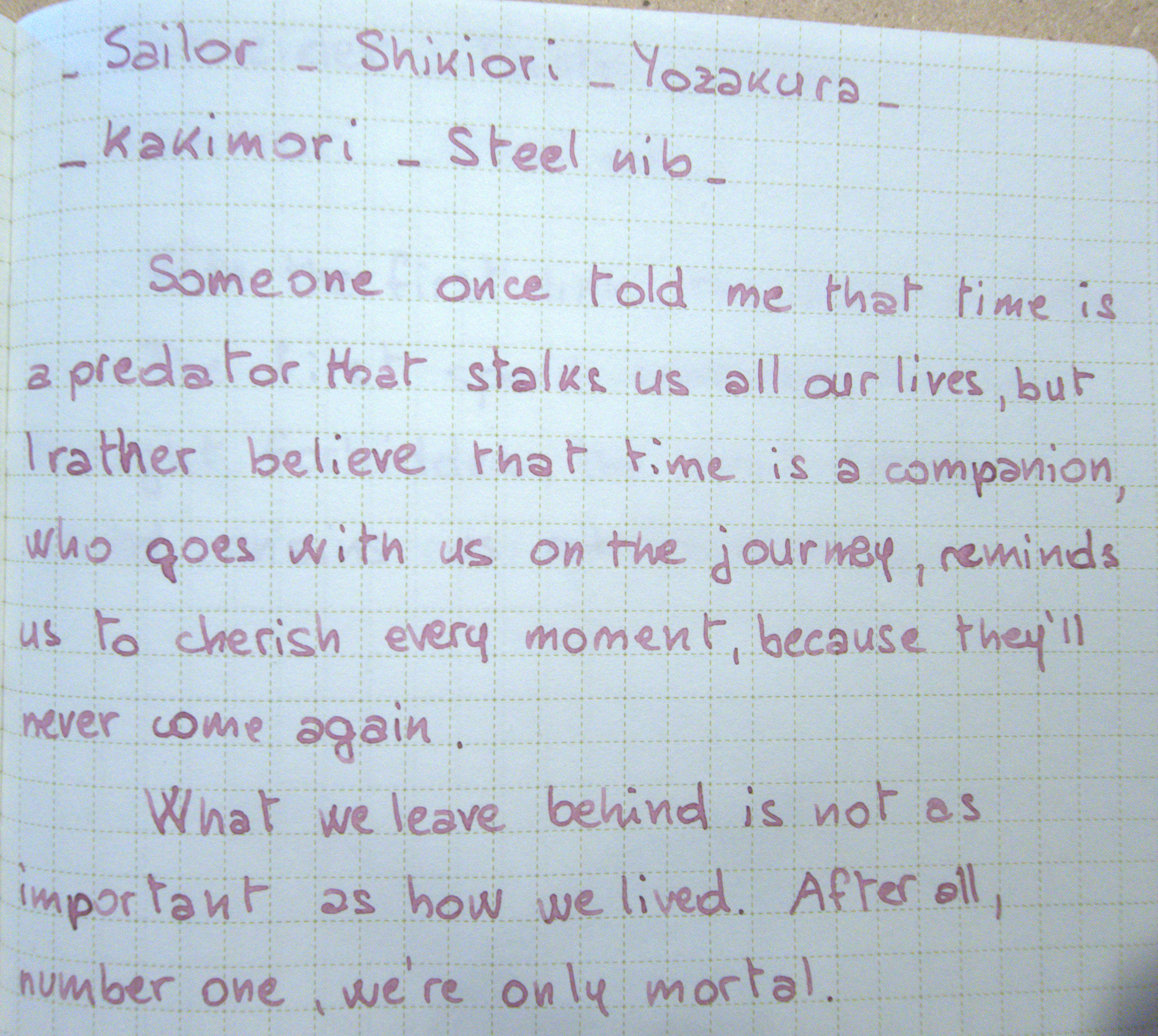 Il pennino usato è il Kakimori in acciaio a meno che diversamente specificato.
