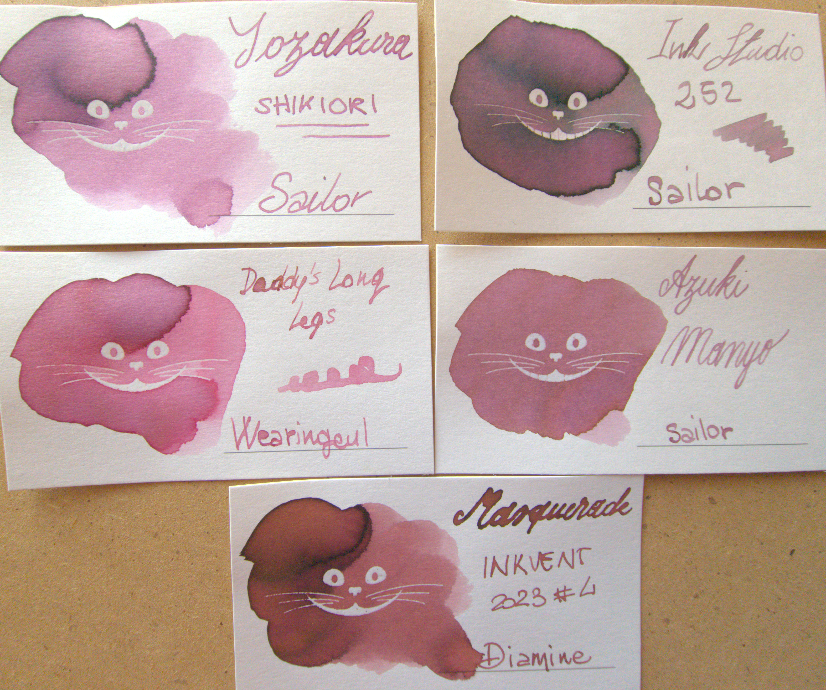 Yozakura è un rosa medio, freddo, desaturato. Ha scarso shading, non ha chromashading a parte raro haloing nero. E' rarissimo uno sheen (nero/verde). Non ha glitter.