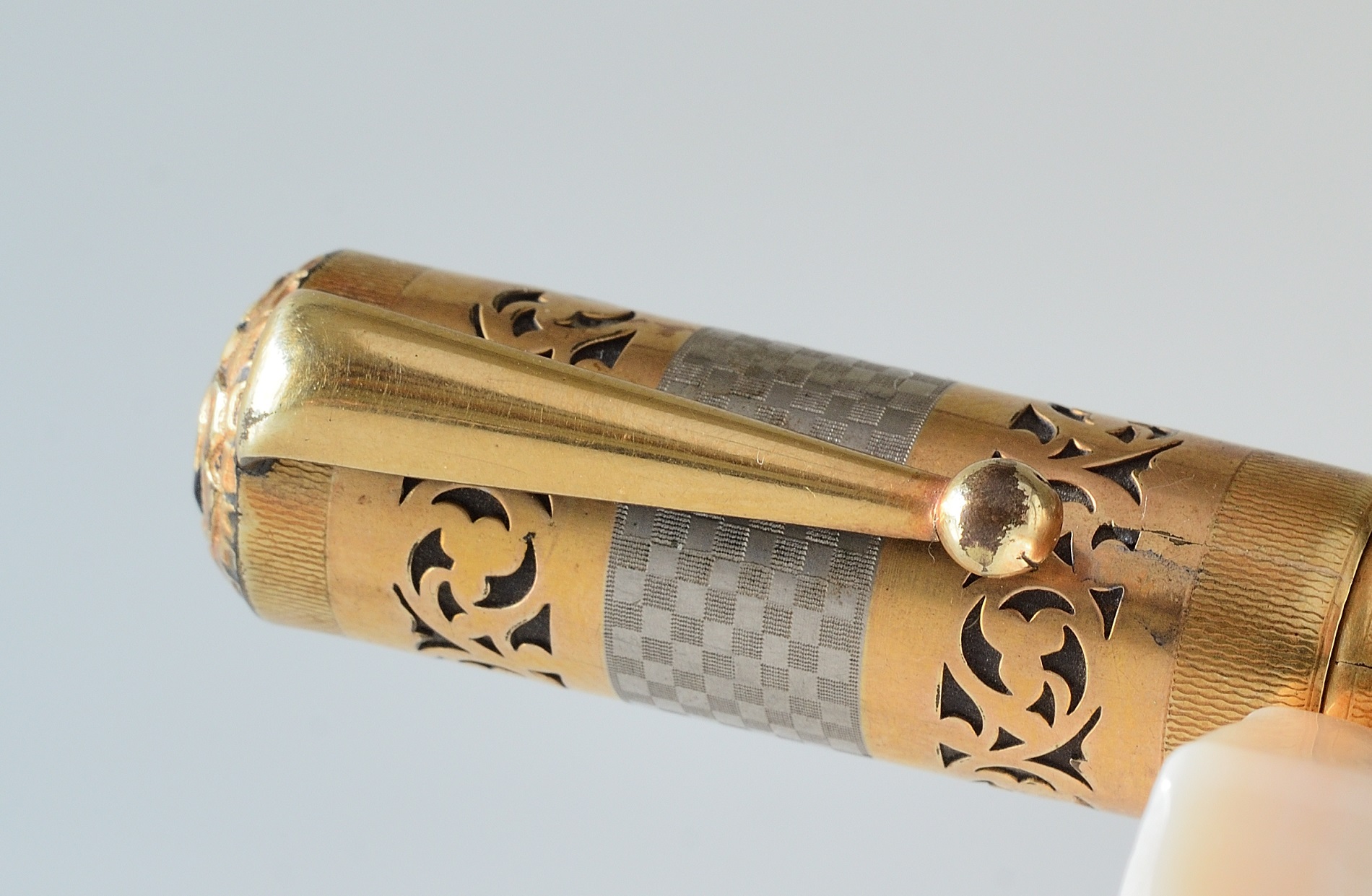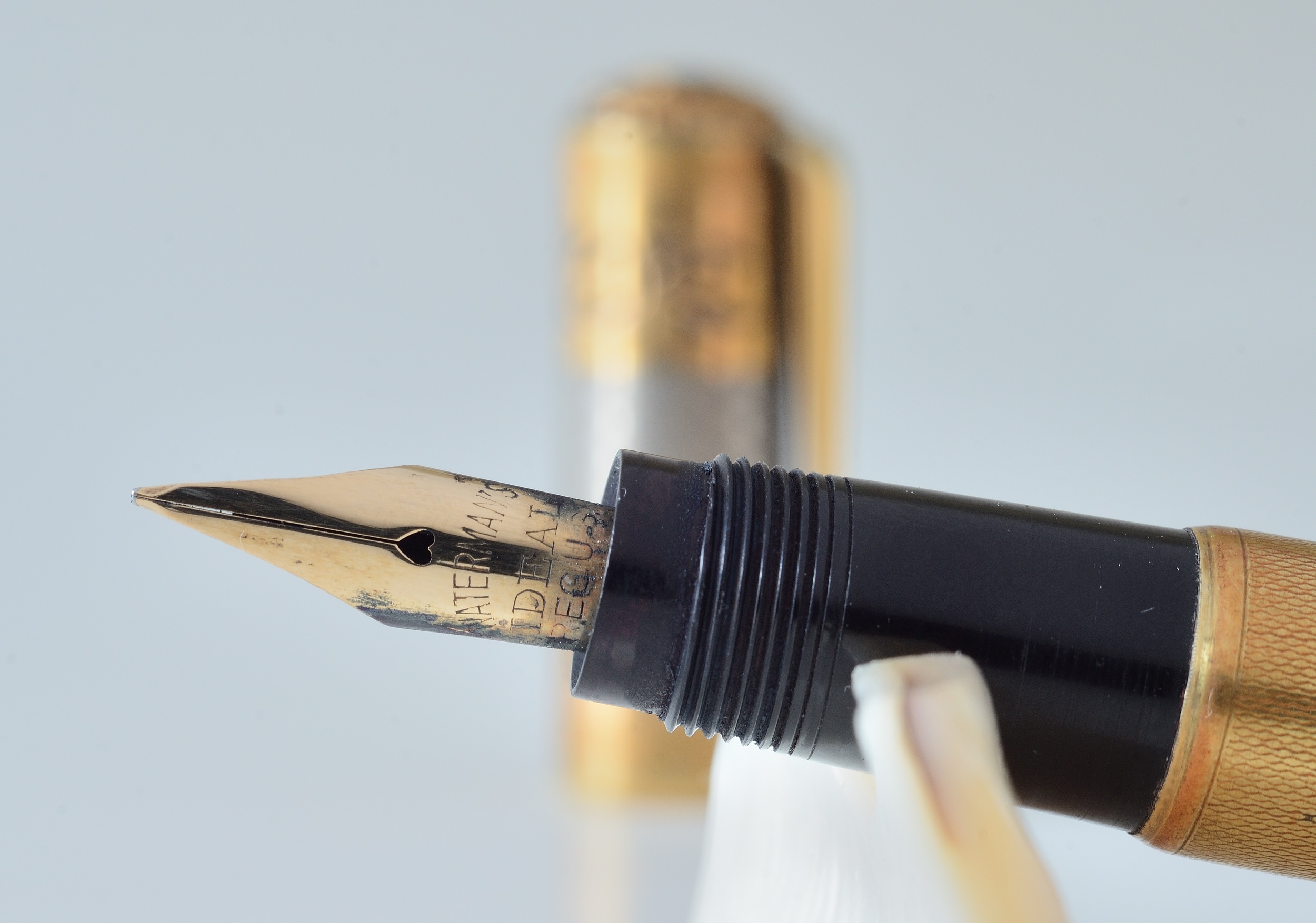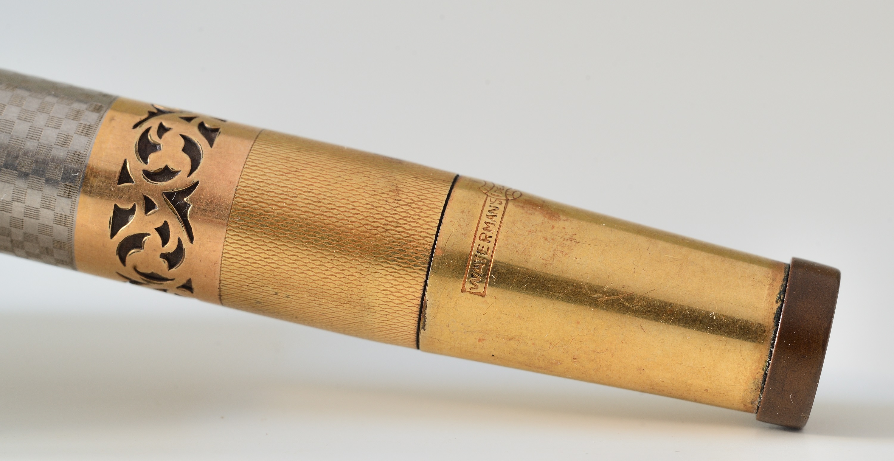 Questo significa che la penna era laminata con oro a 18 carati, in Italia non erano previsti punzioni specifici per questo come per il doublé francese. La laminatura riporta il marchio waterman, in alcuni periodi quelle ufficiali avevano anche delle ulteriori stampigliature, vedi questa pubblicità del 1931: