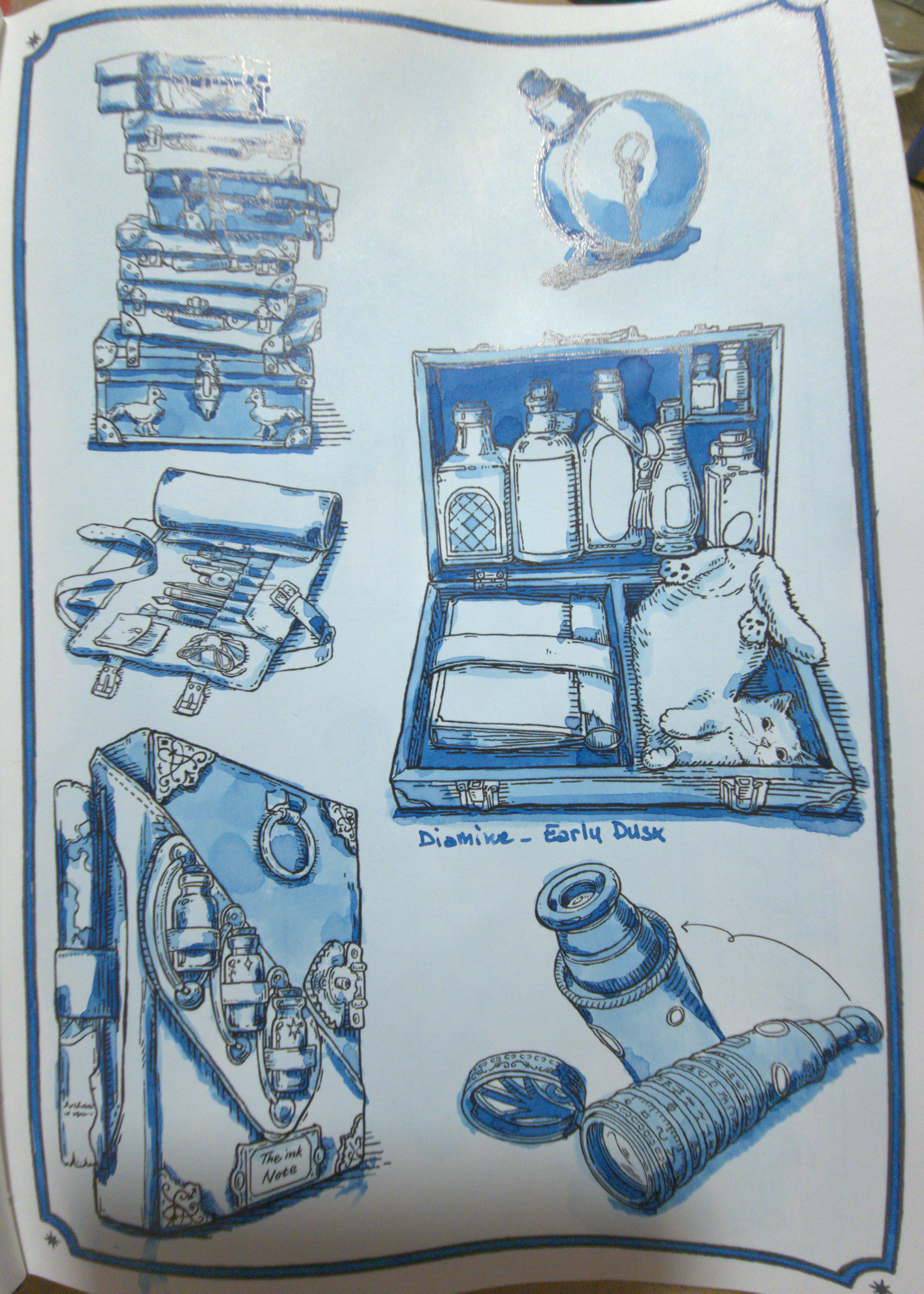Inserisco un paio di pagine del Log of Elixir colorate in tecnica monocromatica con questo inchiostro