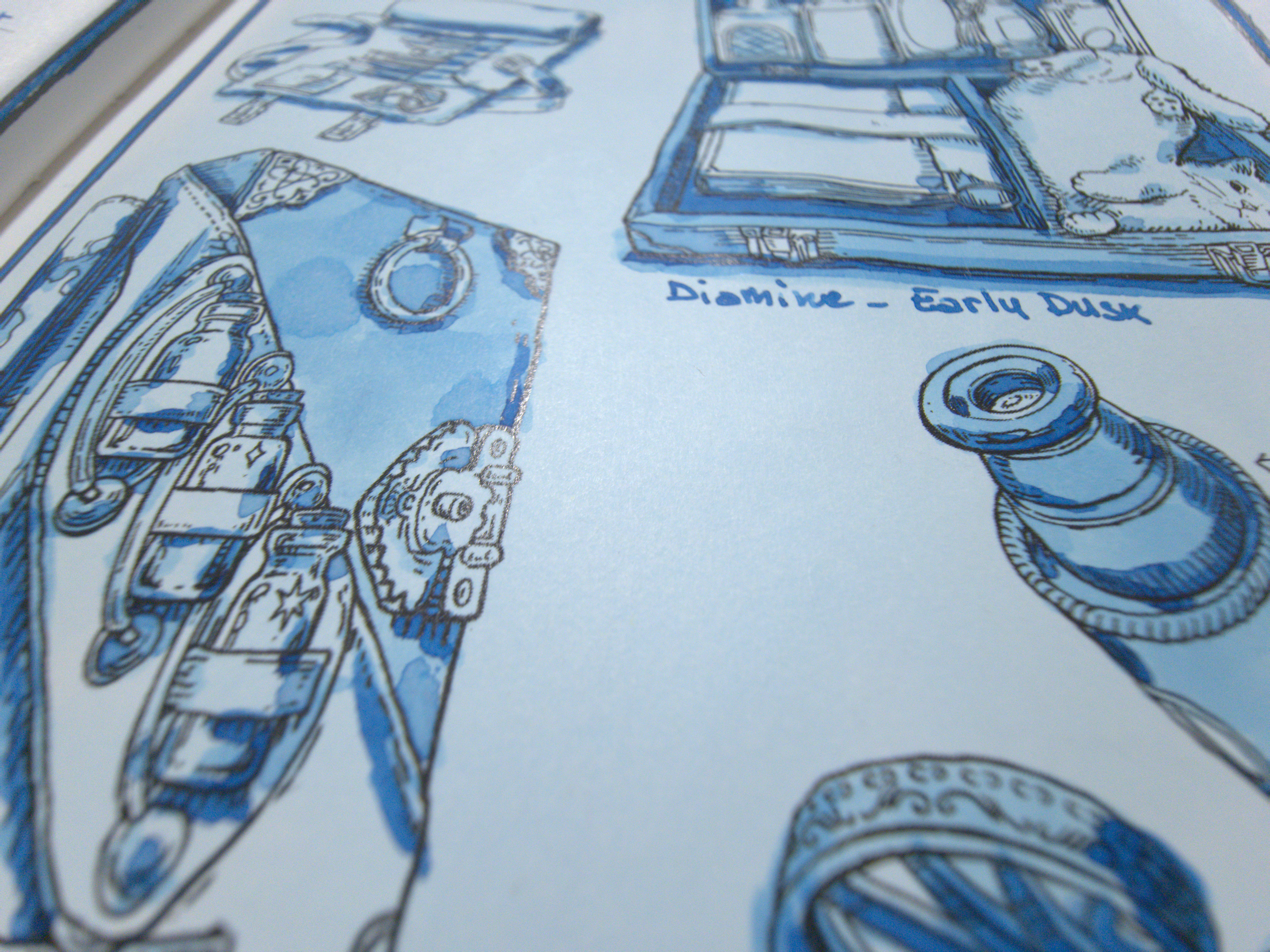Personalmente, tendo a preferire i blu in base rossa, caldi, oppure quelli neutri, quindi Early Dusk non è esattamente il mio tipo di blu. Tuttavia, la componente fredda, in questo inchiostro, è poca, è borderline con una tonalità neutra, quindi mi piace abbastanza.