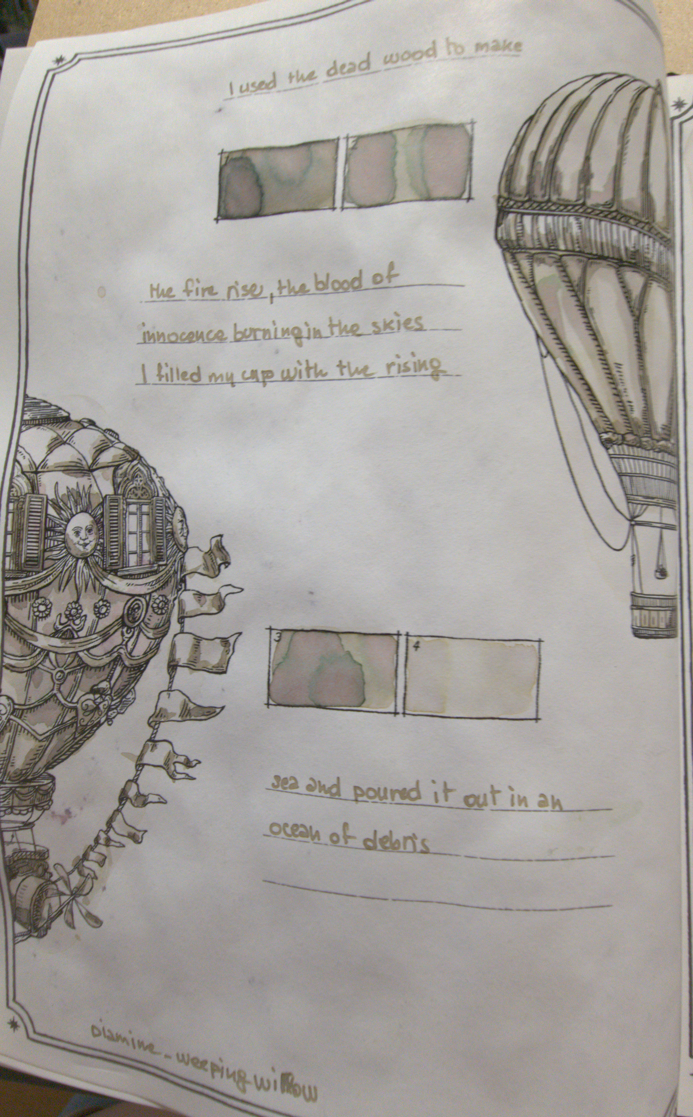 Sotto qualche pagine del Log of Elixir. Meno efficace rispetto ad altri colori, visto che è difficile ottenere particolari contrasti con un colore di suo così chiaro.