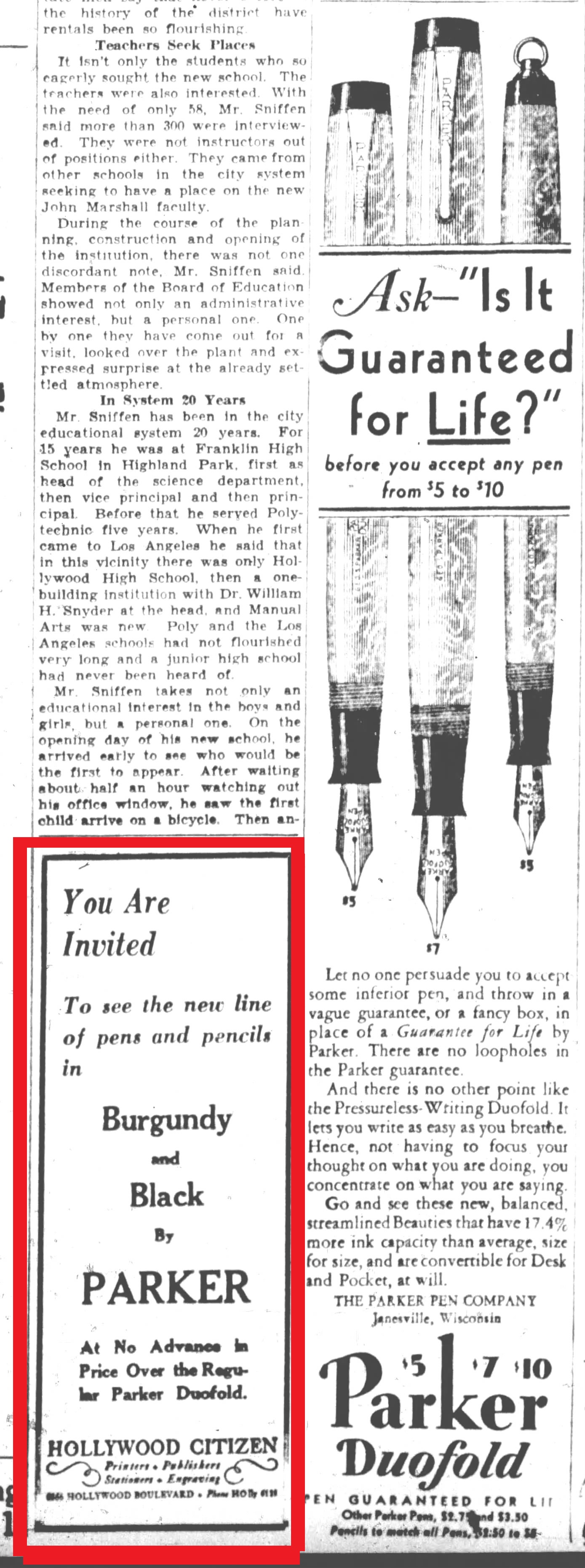 Nell’articolo citato si potranno reperire informazioni interessanti anche sul brevetto del Penparker e sul suo titolare, I.D. Tefft.