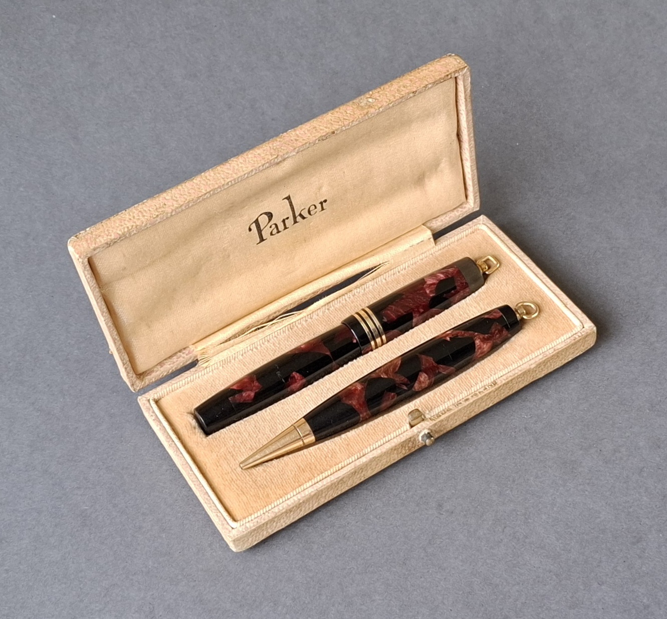 4 • Parker Vest-Parker Duofold Burgundy & Black Set in Box