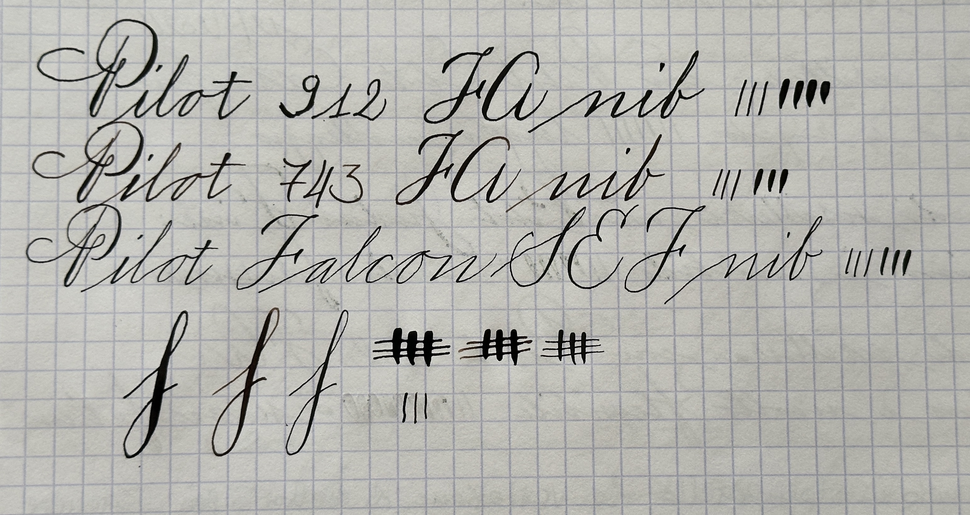 Quella che molti (anche rivenditori) chiamano Pilot Falcon, è la Pilot Elabo in metallo, che è un'altra penna e il cui pennino non ha nulla a che fare con il FA, è un pennino esclusivo per questo modello di penna, è elastico e disponibile in diverse misure di tratto (SEF, SF, SM, SB, dove "S" sta per "soft").