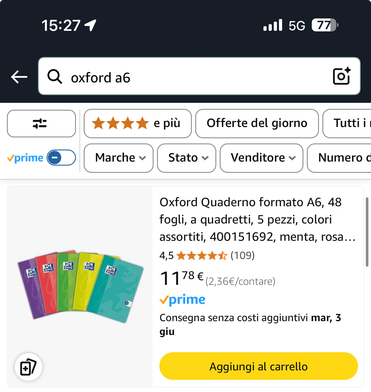Ma sulla più nota piattaforma di vendite online, sono normalmente in vendita gli A6 oxford...
