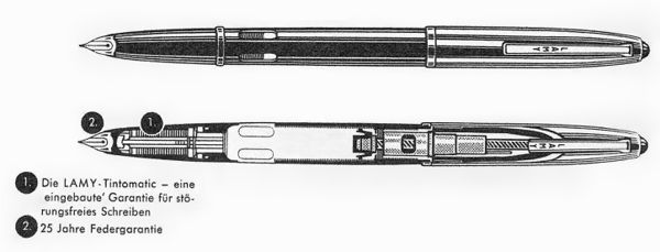 La caratteristica di maggior rilievo è il sistema di alimentazione Tintomatic, che garantisce un flusso costante di inchiostro in diverse condizioni di pressione, e che costituisce la base progettuale su cui la Lamy ha sviluppato gli alimentatori in uso ancora oggi.