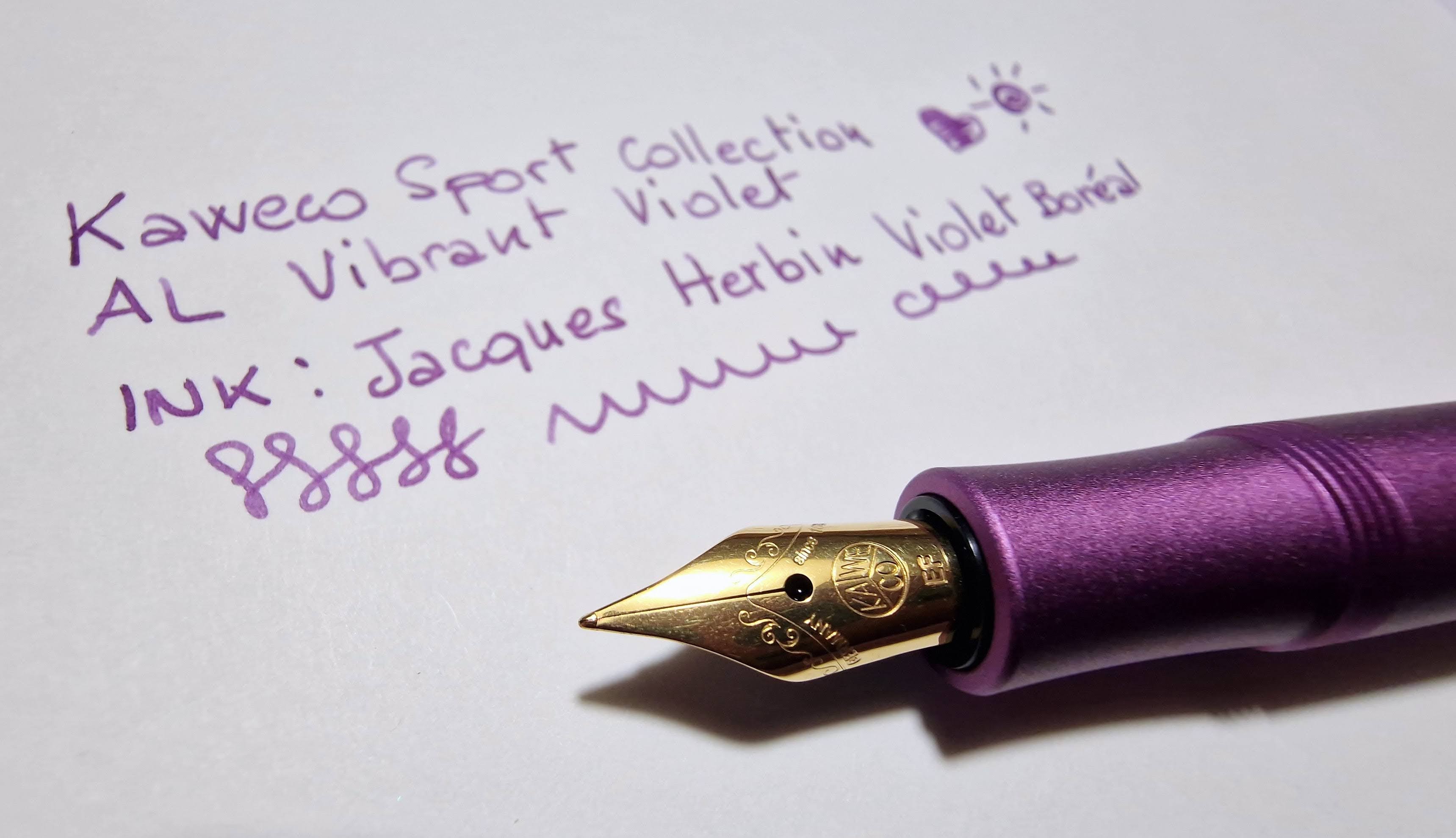 A proposito di inchiostro: non ho seguito il suggerimento di Kaweco. Adoro Summer Purple, è un colore splendido, ma è una cascata del Niagara. Sbrodola e spiuma ovunque, non è per niente un inchiostro ben discplinato.