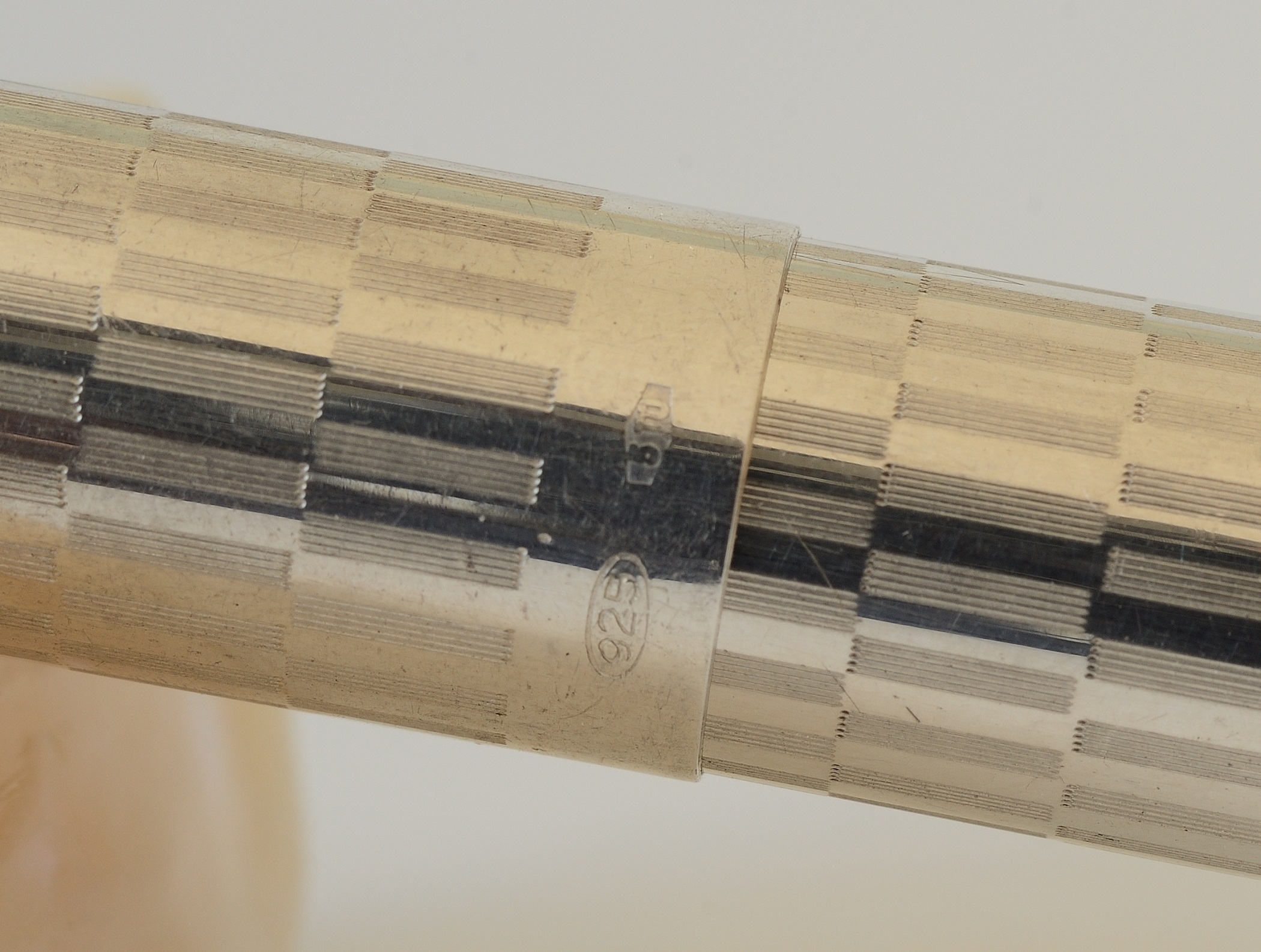 In posizione leggermente defilata, in un angolino, c'era quest'altra penna, che ho preso, sempre in livrea argento 925, facilmente identificabile dalla