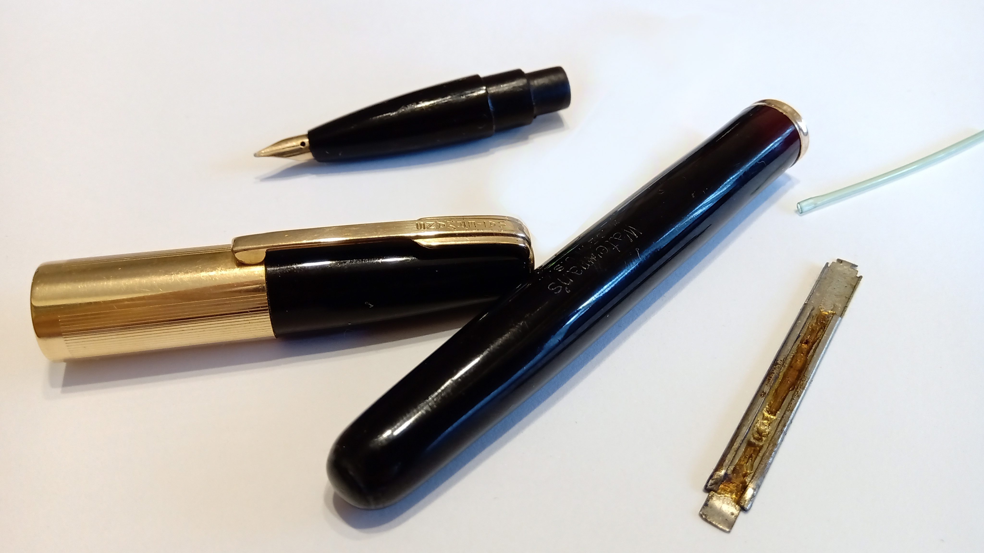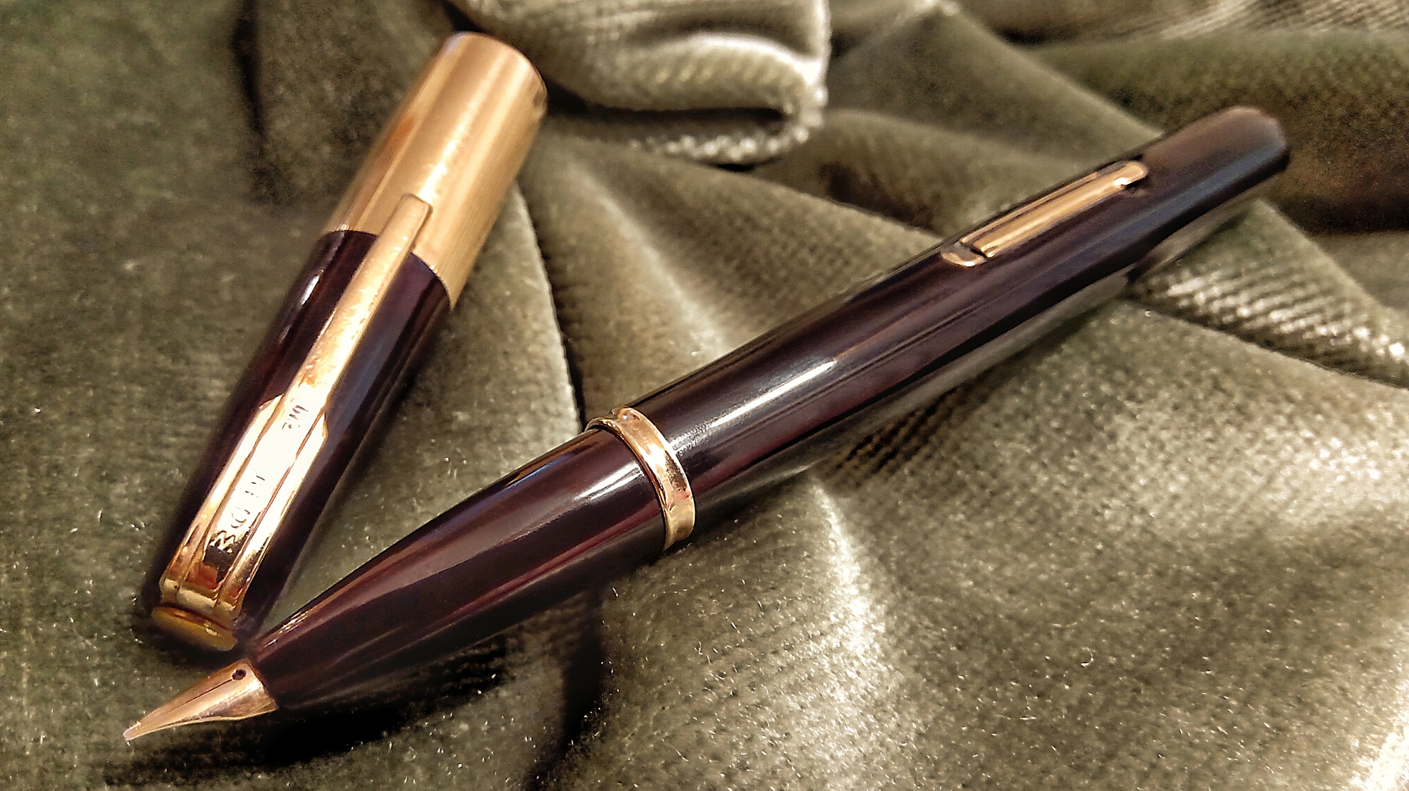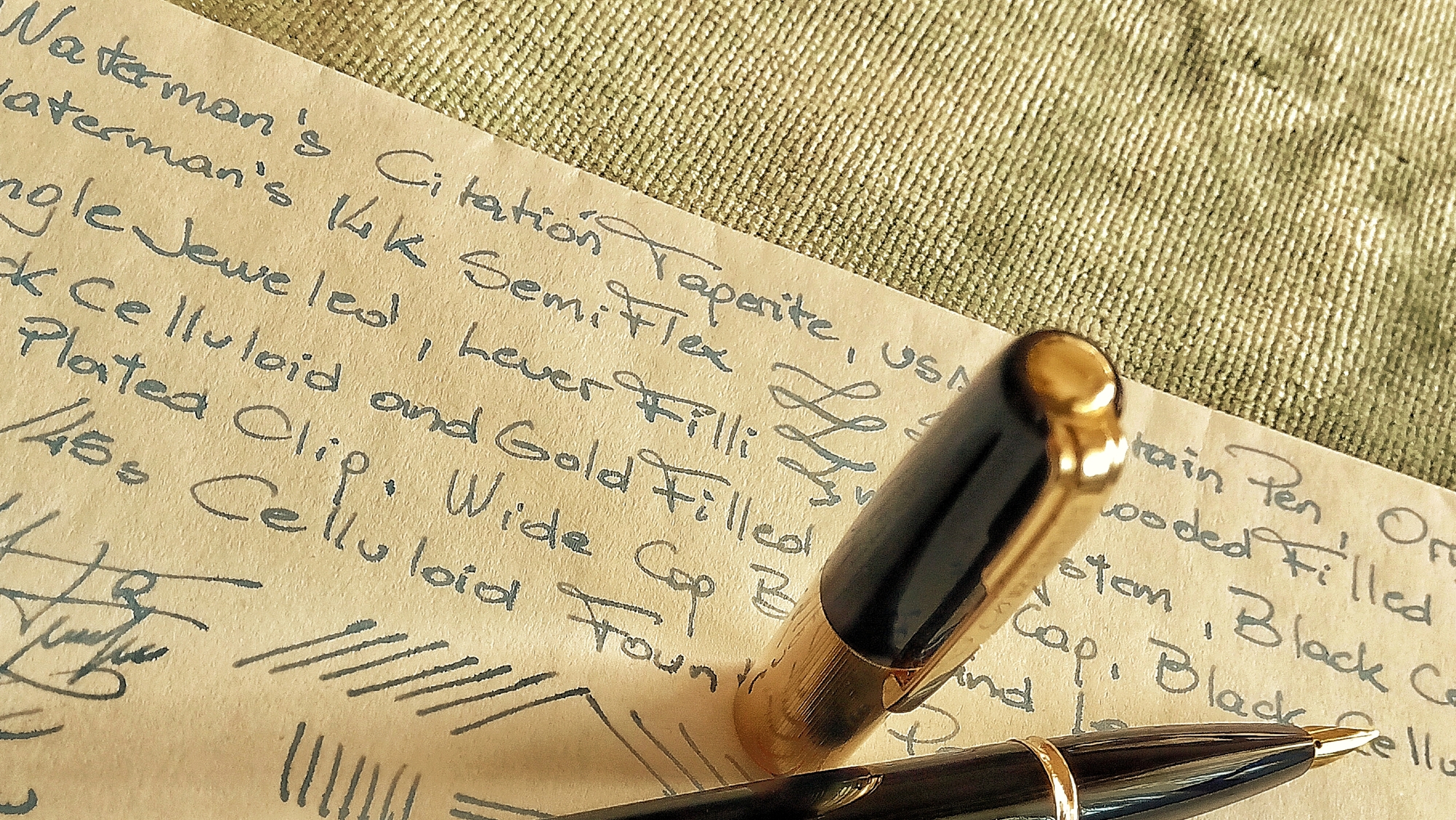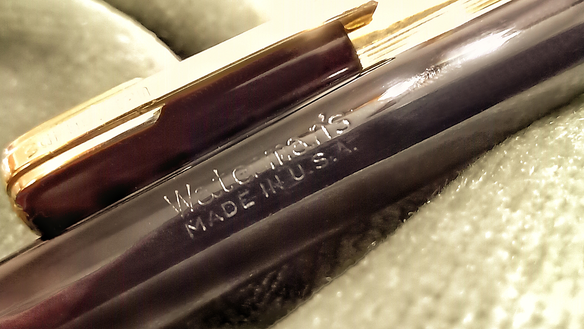 Se trataba de una Waterman's de los fines de los años 40 hecha en celuloide, en concreto una Taperite Citation con plumín semi-hooded de oro en muy buen estado, alimentación por palanca, con sus partes enchapadas en oro en perfectas condiciones...