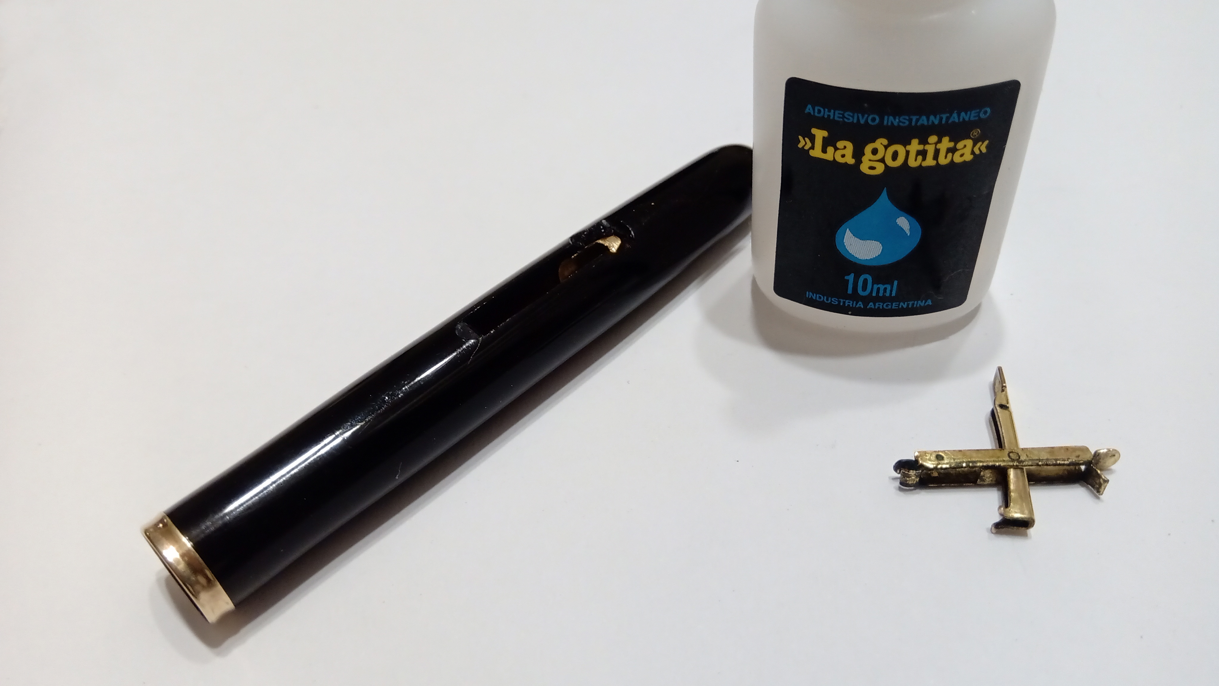 En este caso el cianoacrilato líquido fue una solución, no sólo para asegurar el cilindro en su posición definitiva, sino para disolver el celuloide en las grietas que habían "despertado"...