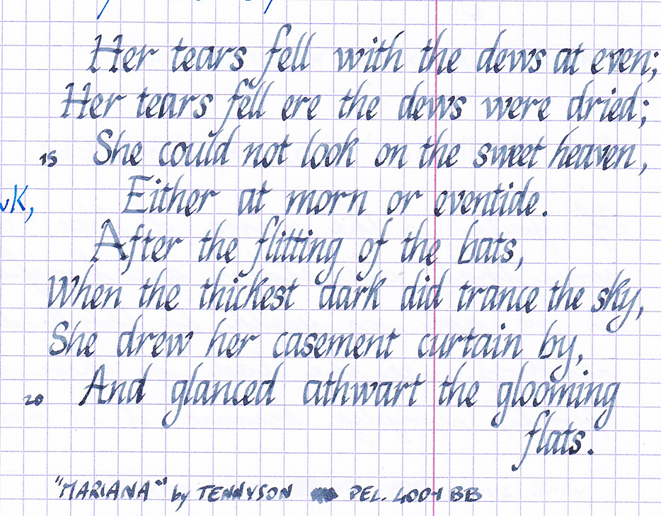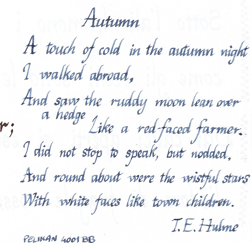 Usare le proporzioni di Reynolds per l'italico non mi confà. Le lettere escono troppo grandi. Quella nella foto è la Moonman M2 con pennino tronco da 1.5mm preso da un'altra penna, una senza-marca al prezzo 1€ dalla Baia. Il pennino non è netto e preciso quanto quello della mia Pilot Pluminix B, per...