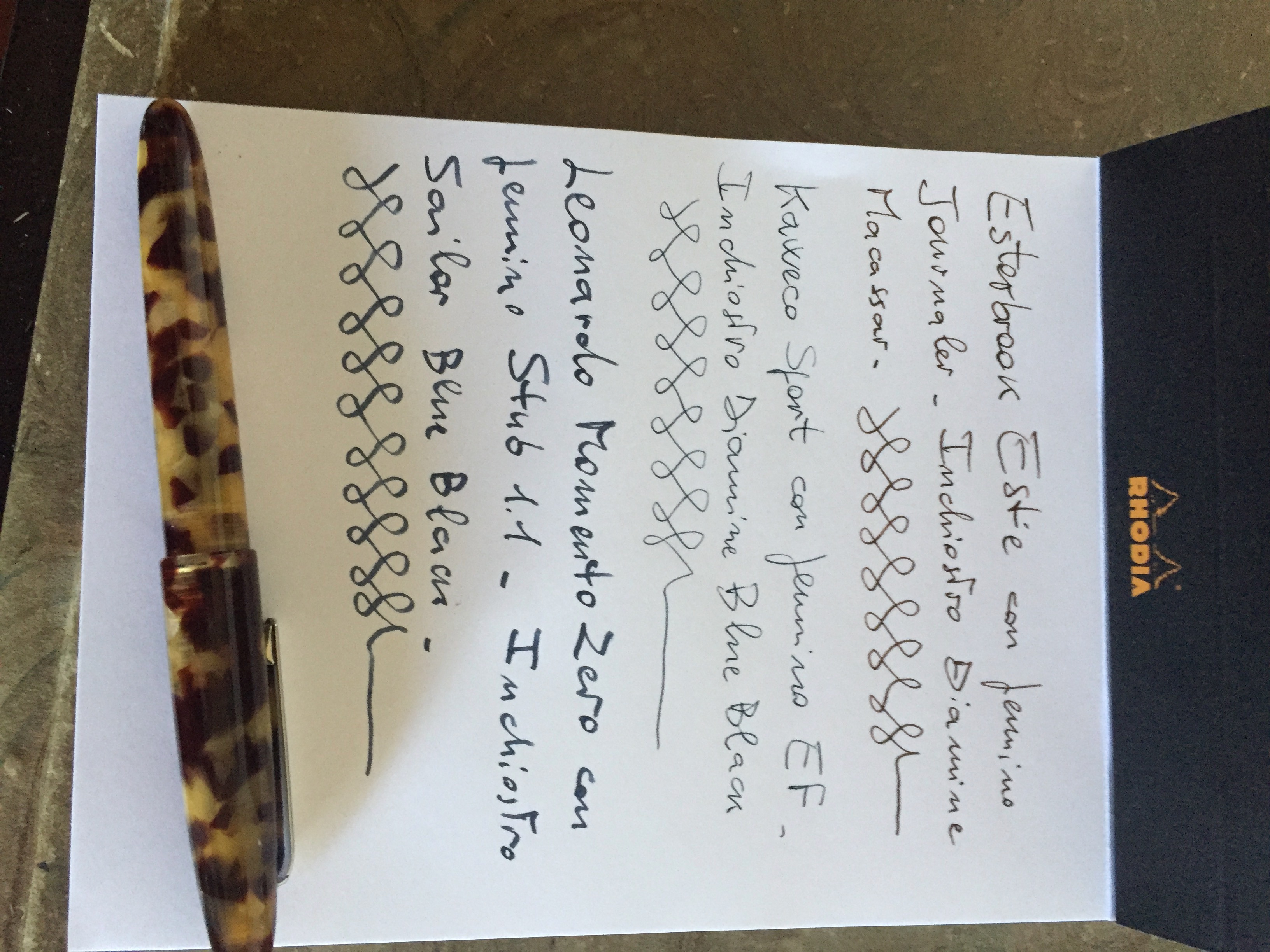 Buonasera, mi presento. Sono Alessandro e colleziono stilografiche da un paio di anni. Le mie preferite sono quelle vintage, tipo Aurora, Pelikan o Columbus, ma mi piacciono molto anche le giapponesi, quelle con il tratto fine. Sabato scorso sono stato per la prima volta ad un Pen Show, quello di Na...