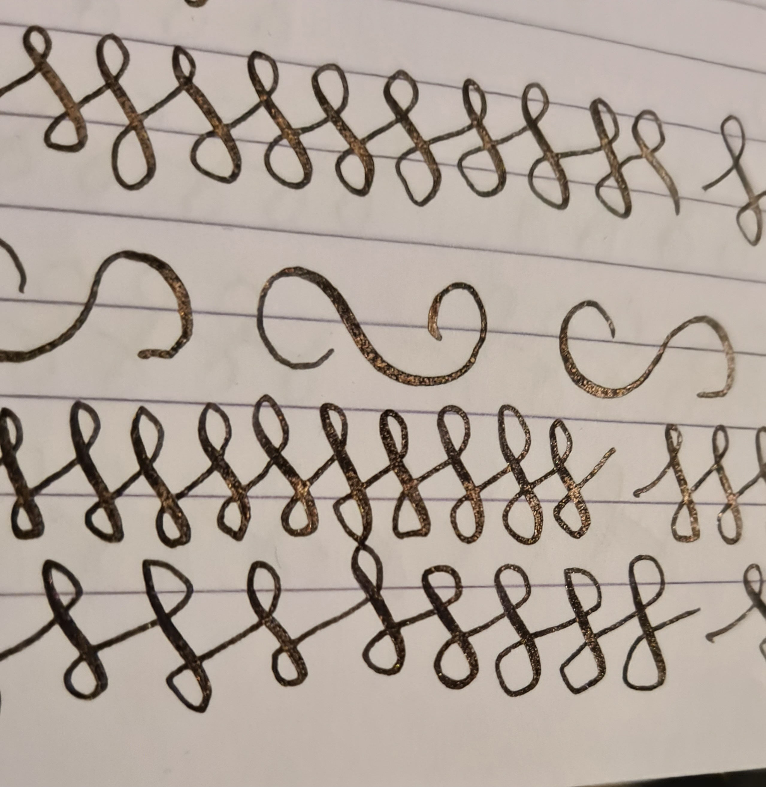 Buon pomeriggio a tutti, Ho recentemente acquistato una noodler's Ahab per poter provare senza paturnie l'inchiostro Herbin Shogun. Ho caricato la penna ed ho cominciato a fare qualche prova: il flusso dell'inchiostro era buono per la mia (bassa) velocità di scrittura e l'effetto "shimmering&qu...