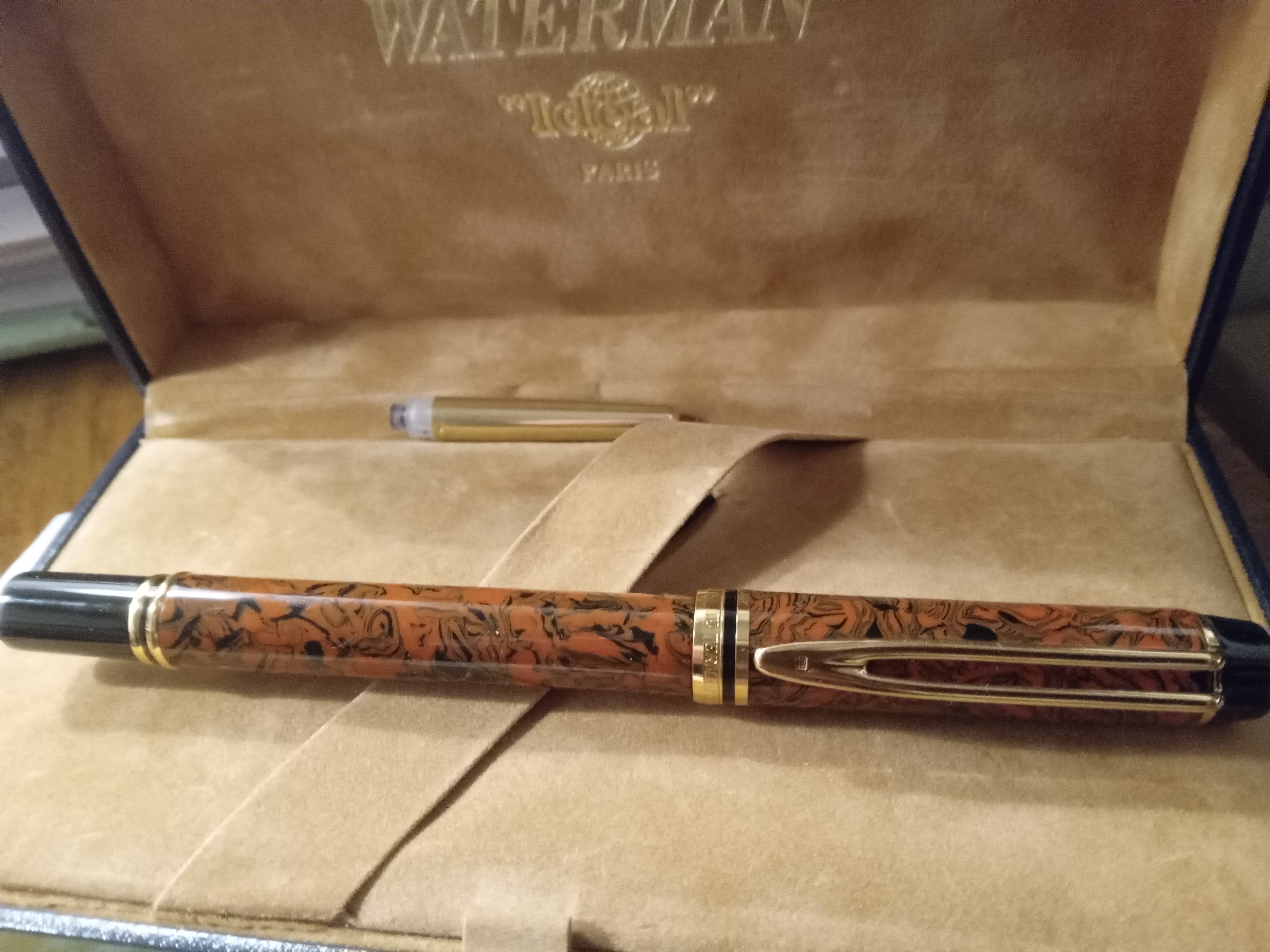 Cari amici di penne, altre due sconosciute. La prima (marrone) la regalarono a me tantissimi anni fa e l'ho usata tanto. Poi l'ho un po' abbandonata e non ricordo nè marca nè modello. Mi sembra di leggere la parola "Maximo o Maxima" nella parte inferiore del cappuccio (ho fatto la foto). O...