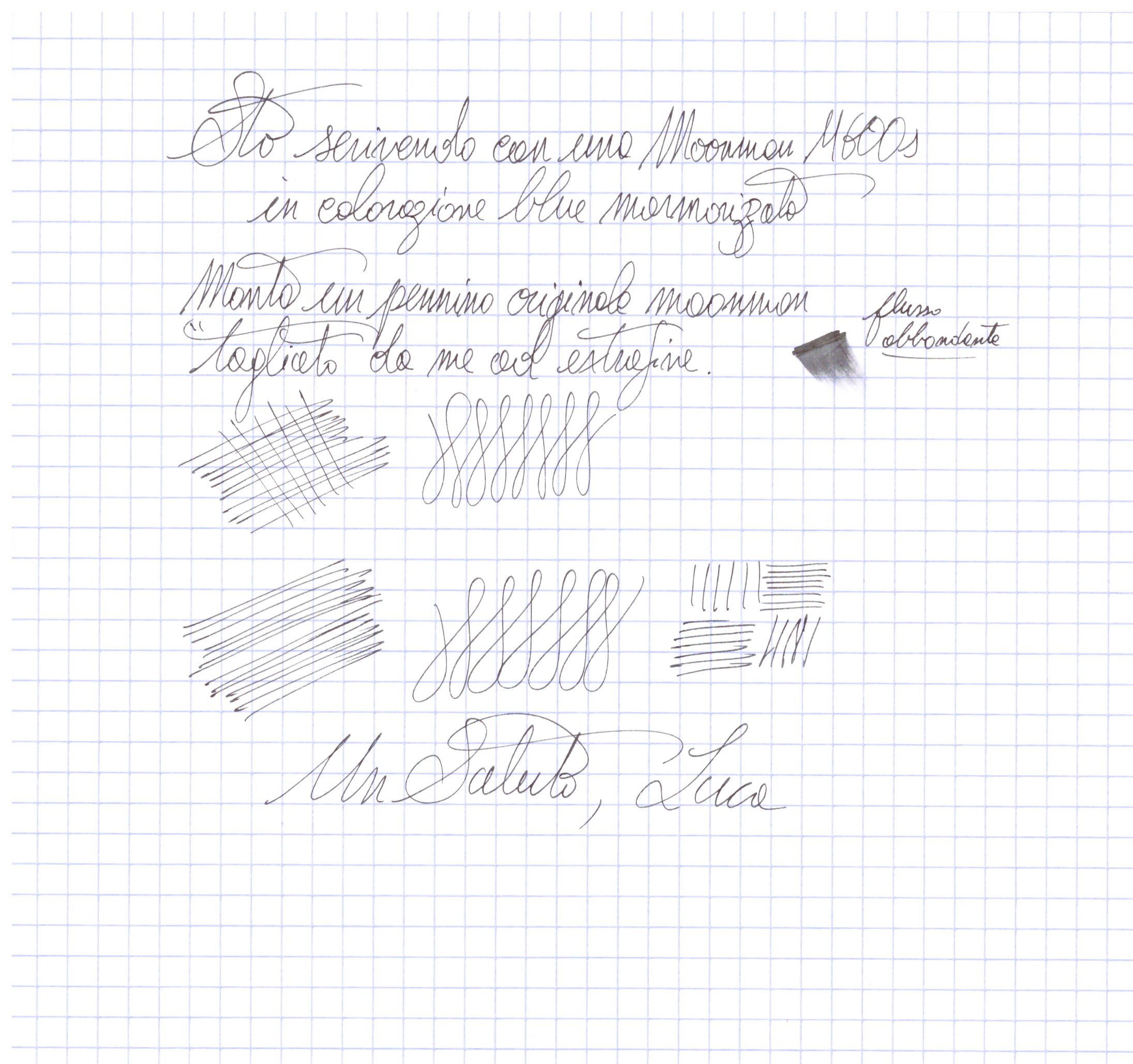 Ho provato a tagliare un pennino extrafine per questa mia Moonman M600s in acrilico blu marmorizzato.