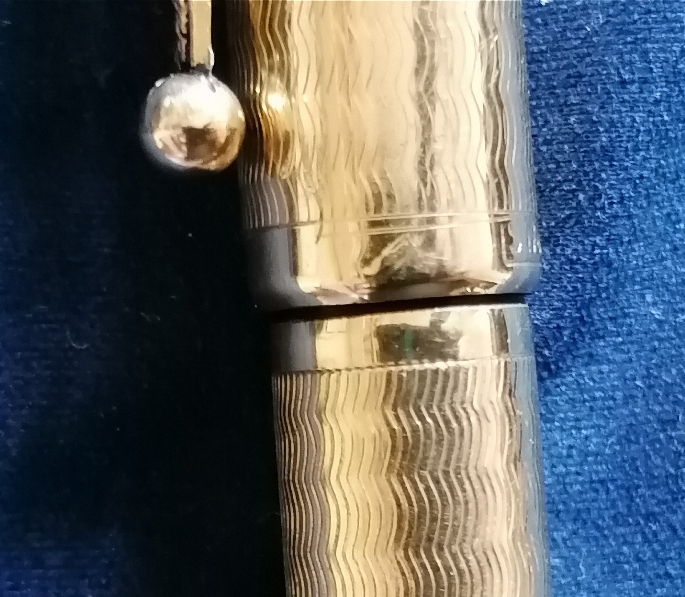Purtroppo quando ho aperto la confezione, anch'essa ereditata da mio padre, mi sono trovato con pennino e alimentatore staccati e non più collegati al meccanismo di recupero/estrazione del pennino che è sito sul fondello del fusto.
