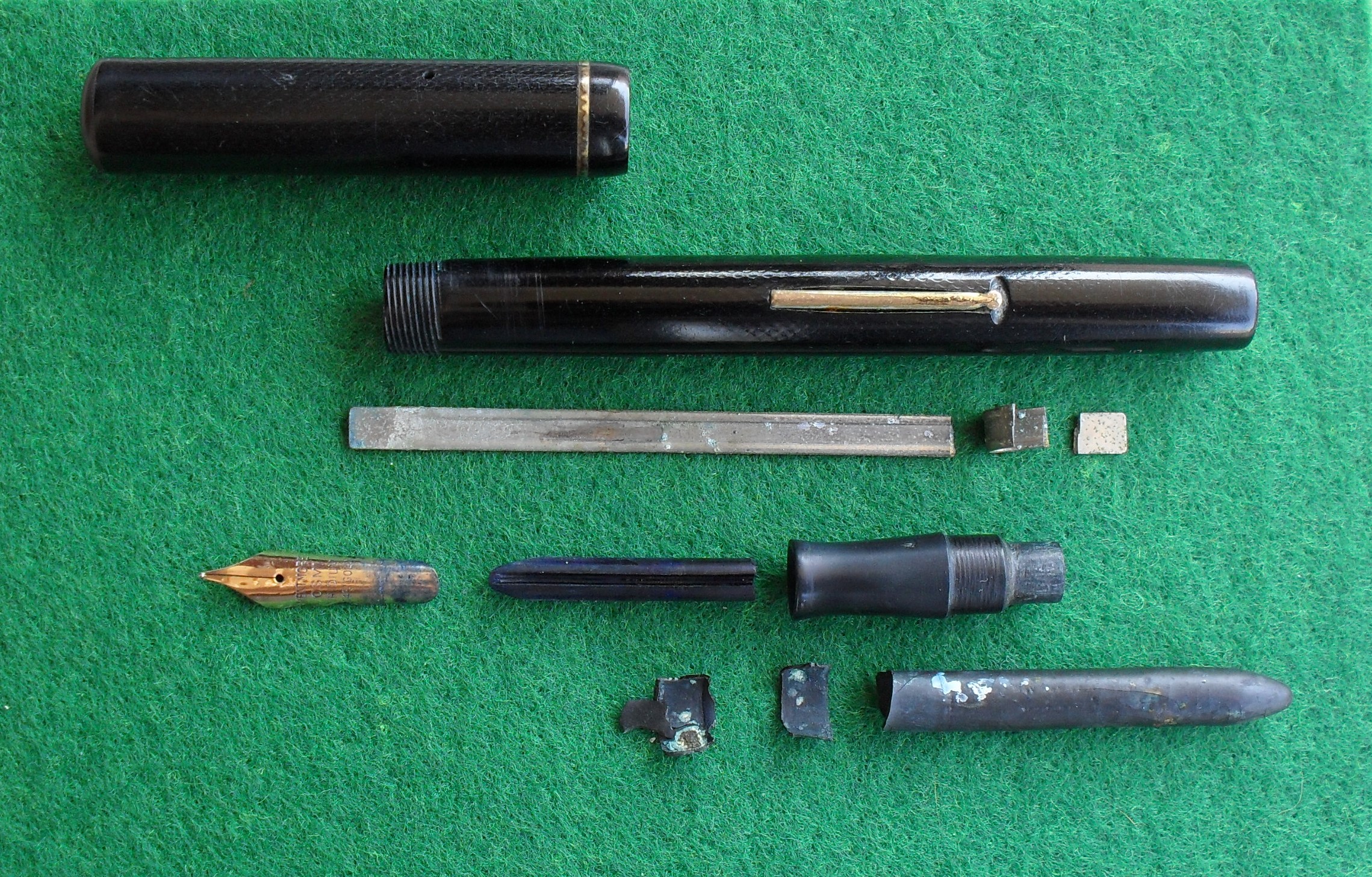 Relativamente alla barra di compressione, non riuscendo a reperirne una identica, sono rimasto a lungo in forse circa la possibilità di montarne una differente. Alla fine, tenendo anche conto del fatto che la penna è stata soggetta ad un uso intenso, ho optato per una barra del medesimo tipo, originale Lang, ma leggermente meno lunga (e diversa da quella che vedete nella fotografia precedente), che ho reperito grazie ad un collezionista britannico.