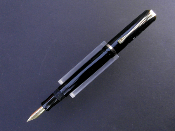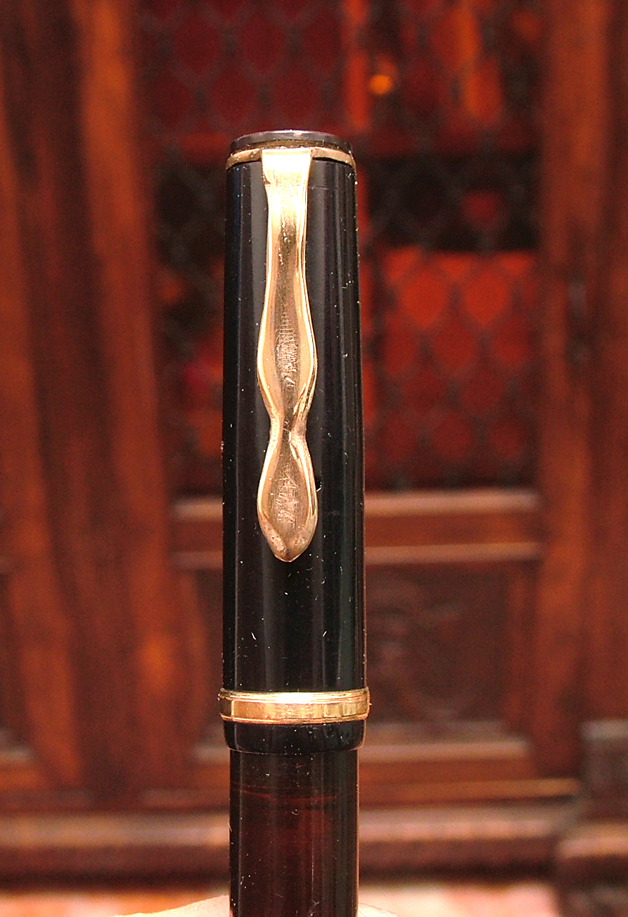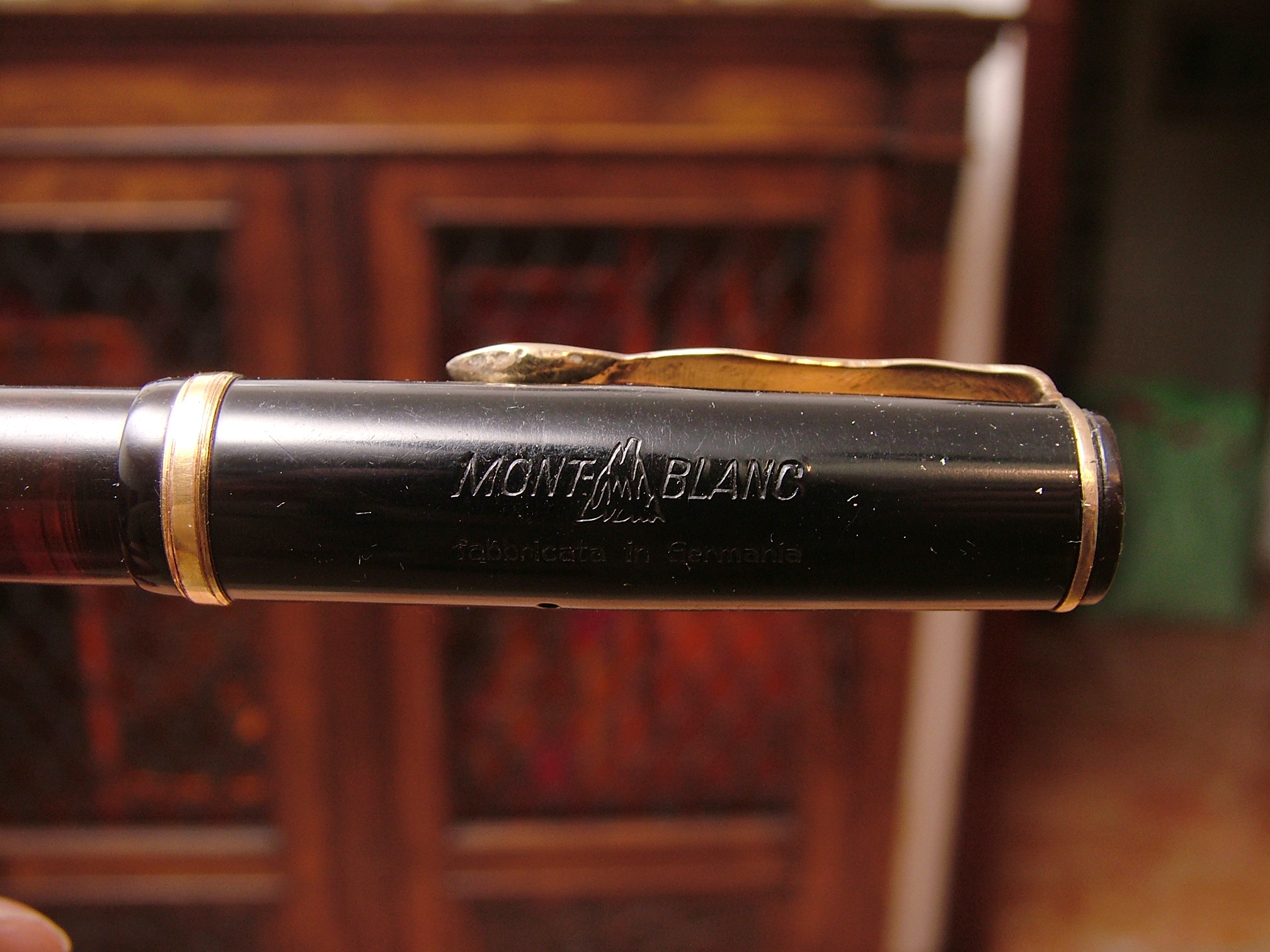 Posto mostrarti al volo una penna di questa serie che ho acquistato abbastanza di recente ed è poi quella della quale ho mostrato la ricostruzione di una porzione della parte filettata che contiene il pulsante di fondo: questa in effetti dovrebbe essere una 224: 2 come serie inferiore alla 1 o Meisterstuck, 2 indicativo del caricamento a pulsante di fondo o push knob, 4 indicativo della taglia, espressa del numero del pennino. Come vedi il fermaglio di questa penna è di un altro tipo.