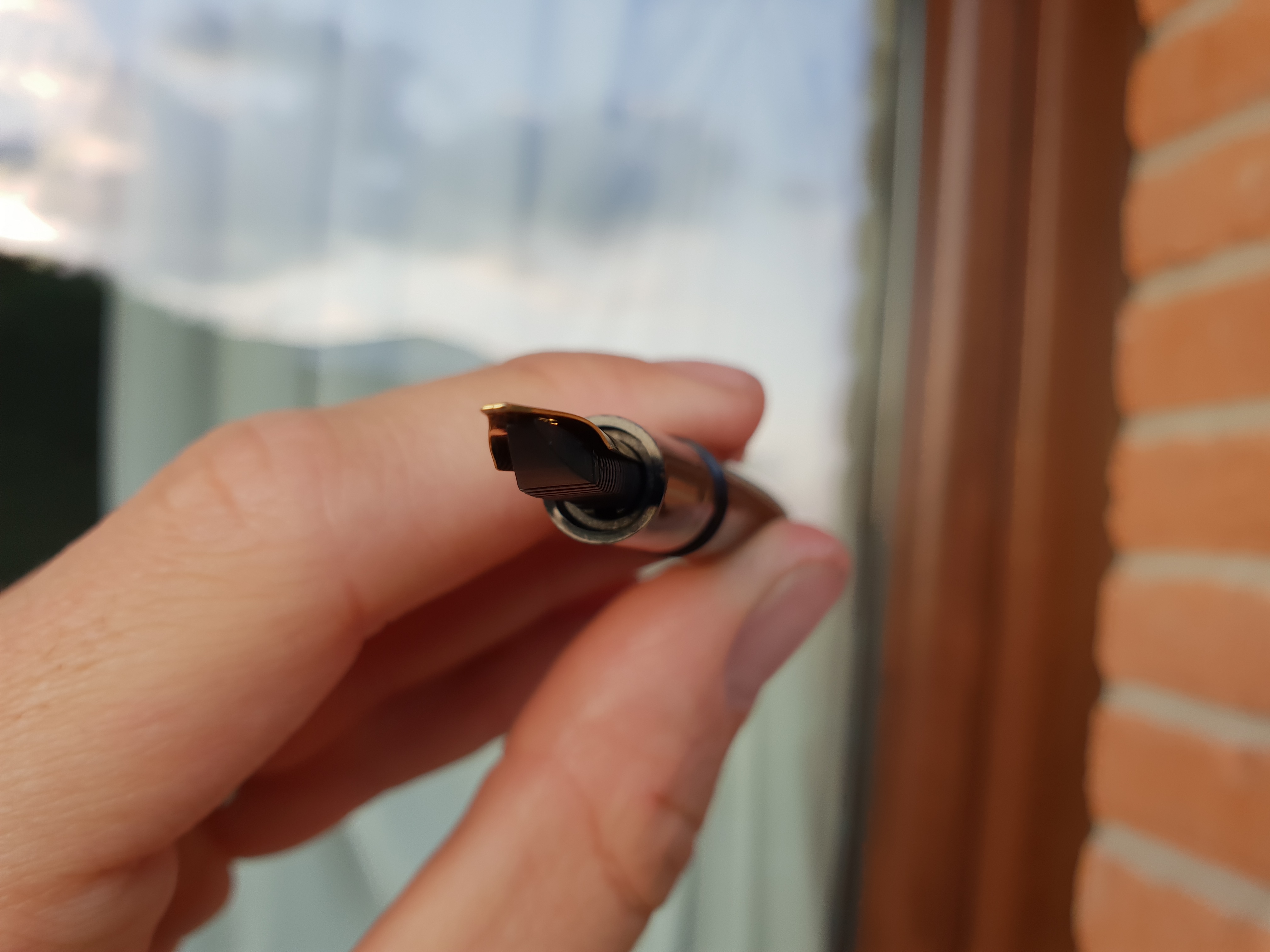 Valuta l'accoppiamento a pennino montato e guardando di lato per verificare che non ci sia troppo spazio: premi con la punta del pennino su un'unghia e vedi di quanto si discosta il metallo dall'alimentatore.