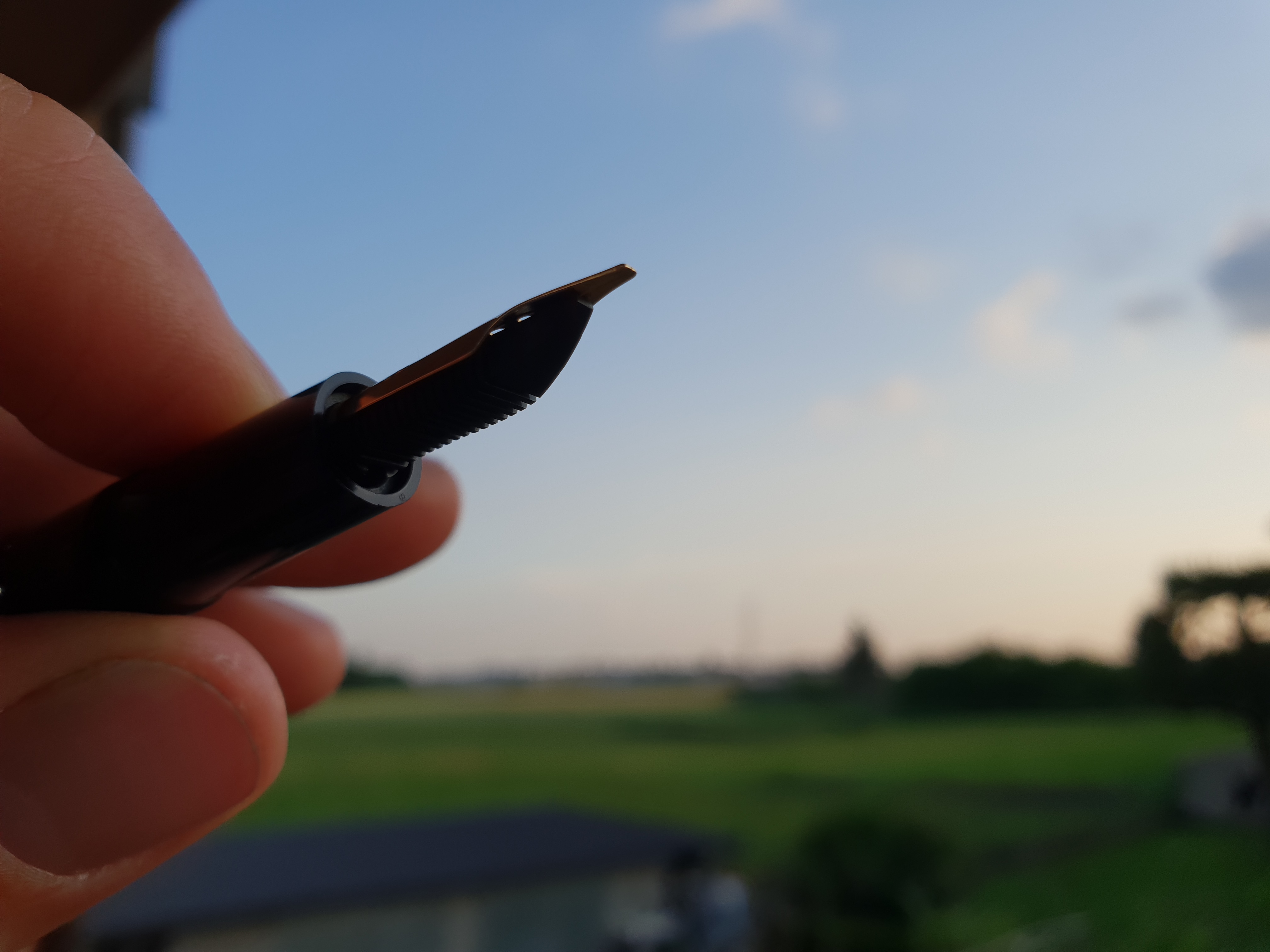 Ad una prima occhiata sembrerebbe tutto a posto Ma ad un esame più attento si nota che l'alimentatore non copia perfettamente il pennino Di seguito delle foto da varie angolazioni. Non si vede chiaramente lo spazio tra alimentatore e pennino, ma si vede attraverso i fori di areazione del pennino. Ne ho fatte sia tenendo il tutto assieme tra le dita, sia inserito nella penna. Attendo lumi dai Guru della sezione