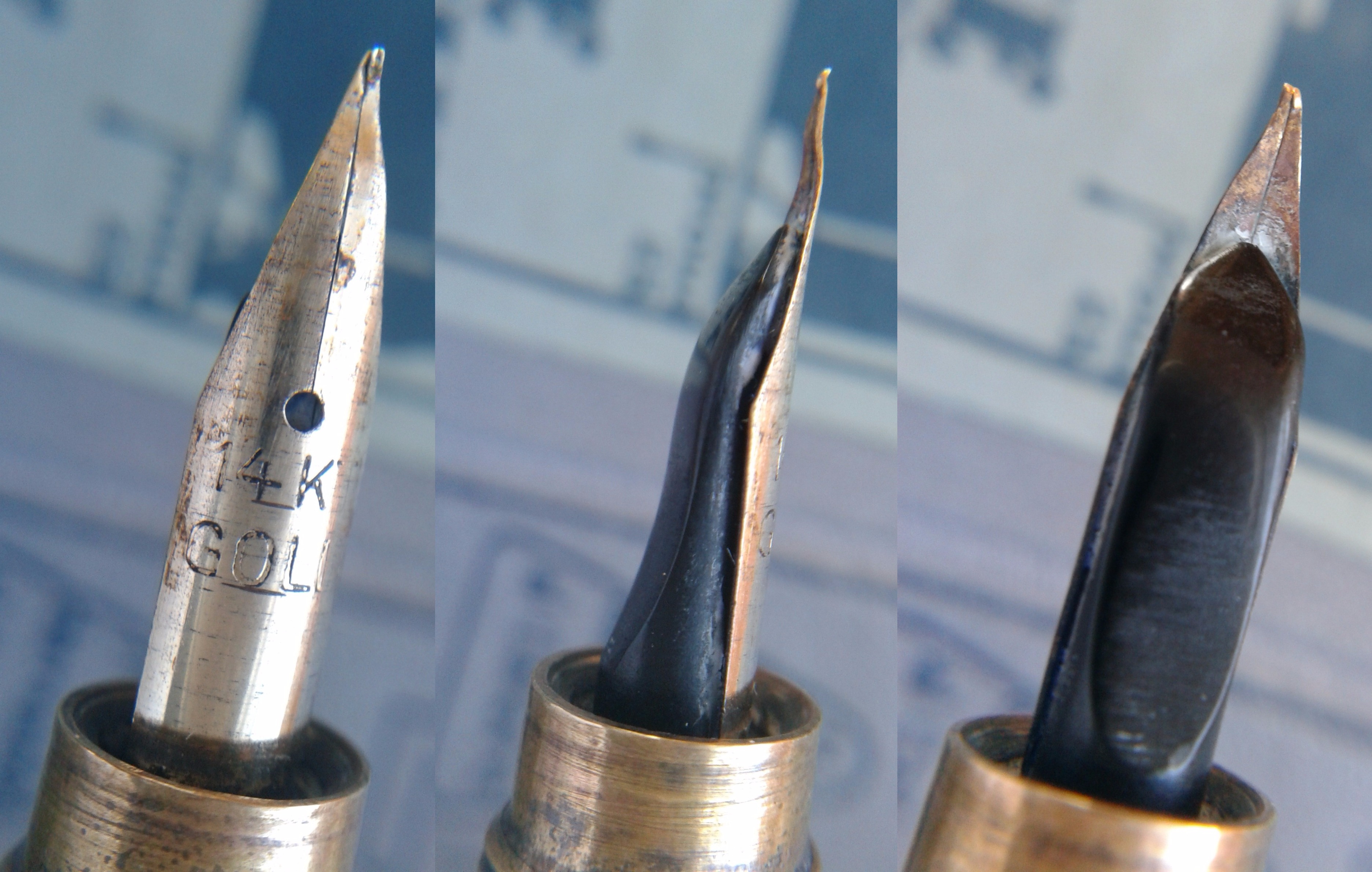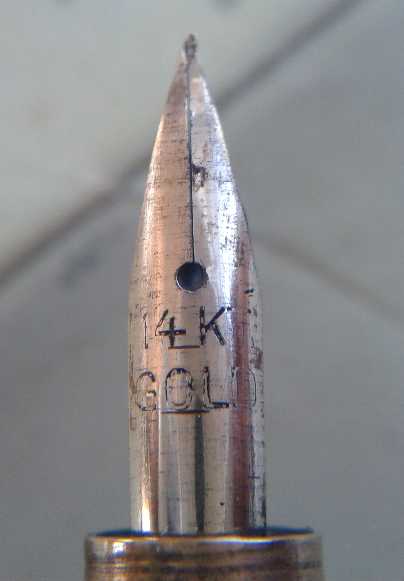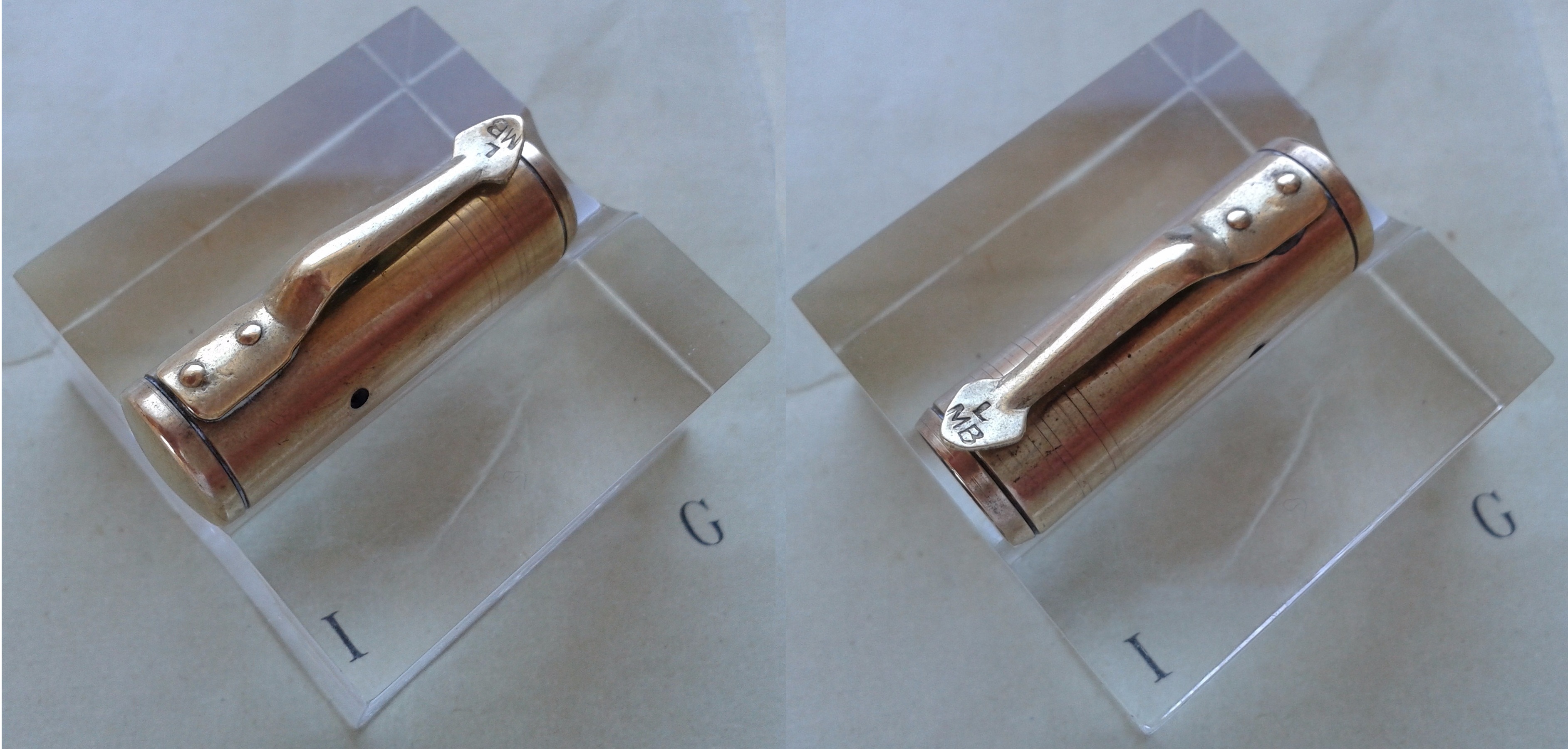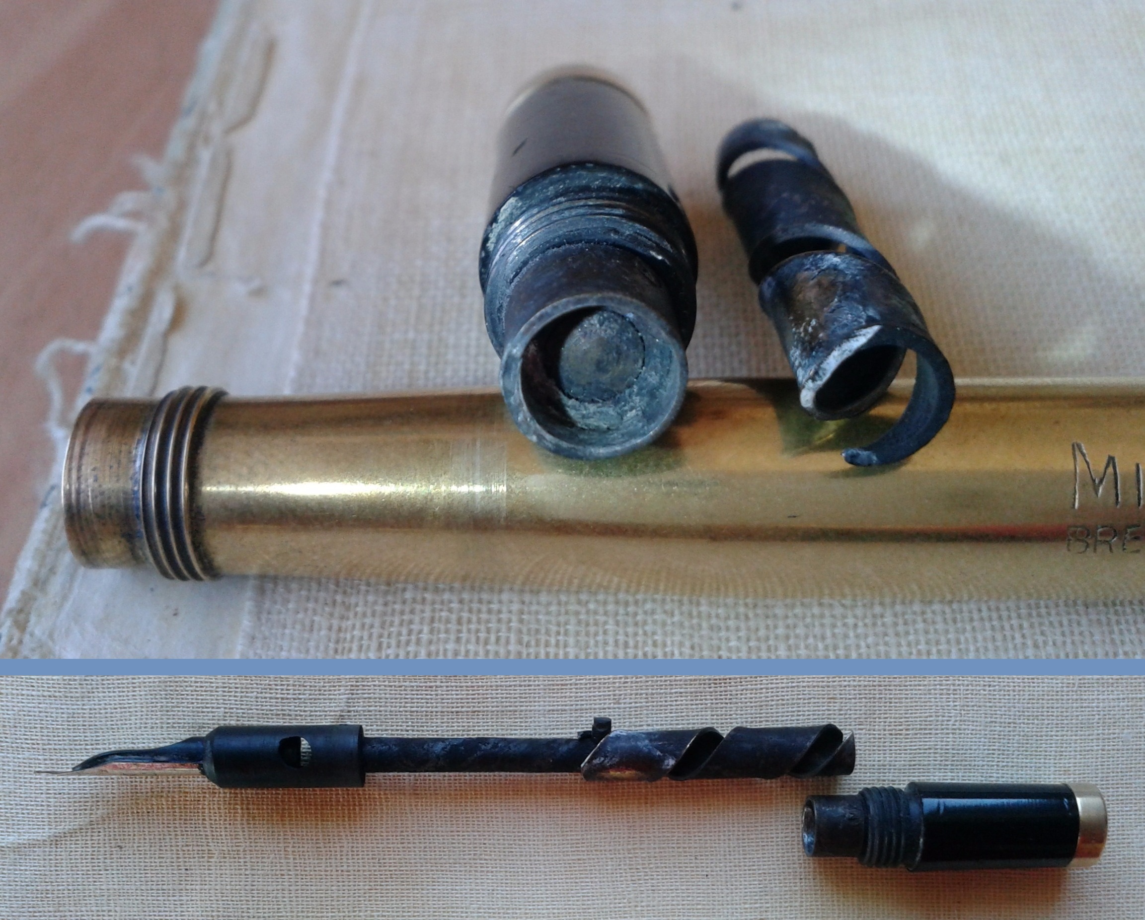 La mia scelta è caduta sulla curiosa scoperta di un recente mercatino: sotto una patina di lerciume indicibile si celava una stilografica che pareva una “chiave inglese” (solo per il peso! no, non allarmatevi, non è l’ennesima Summit nera), pareva persino una laminata senza esserlo, ma era riuscita comunque a ridestare in me il grato e mai sopito ricordo di quasi quarant’anni di vita milanese: non poteva essere altrimenti, d’altronde, poiché sul manufatto occhieggiava gagliardamente la (molto improbabile!) Marca