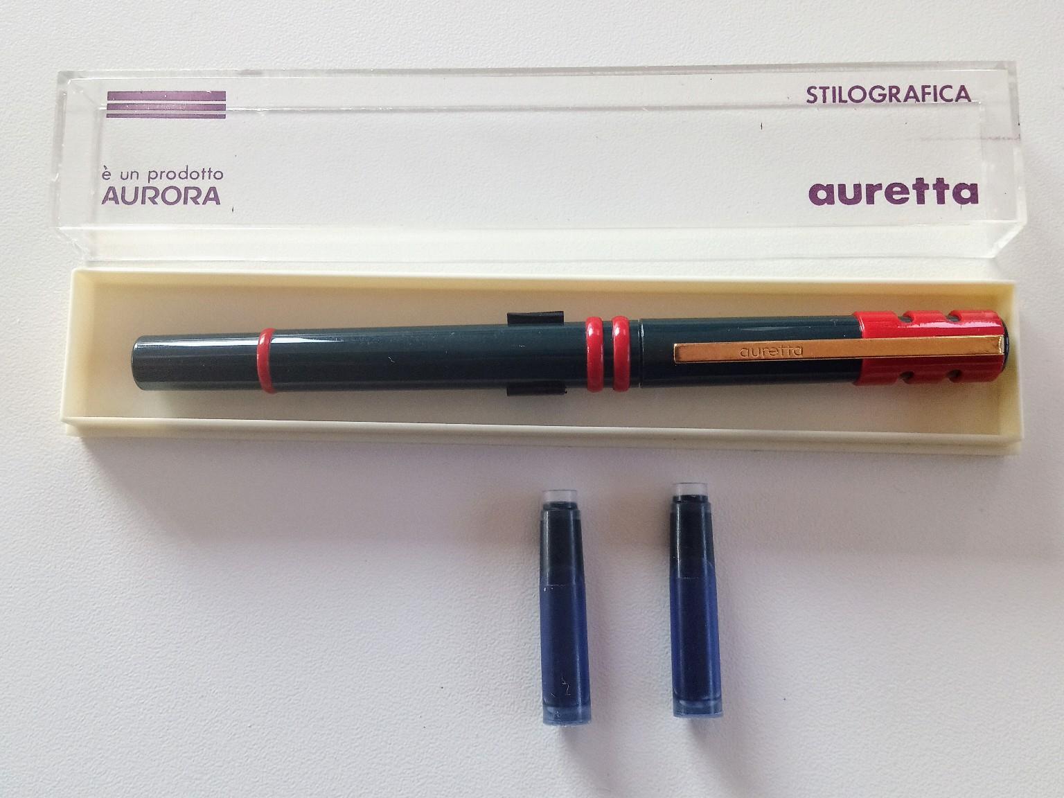 Ci sarebbe poi la quarta serie, cioè l'Auretta con pennino piatto e decorata con anellini lungo il fusto e il cappuccio, con un aspetto molto anni '80 direi.