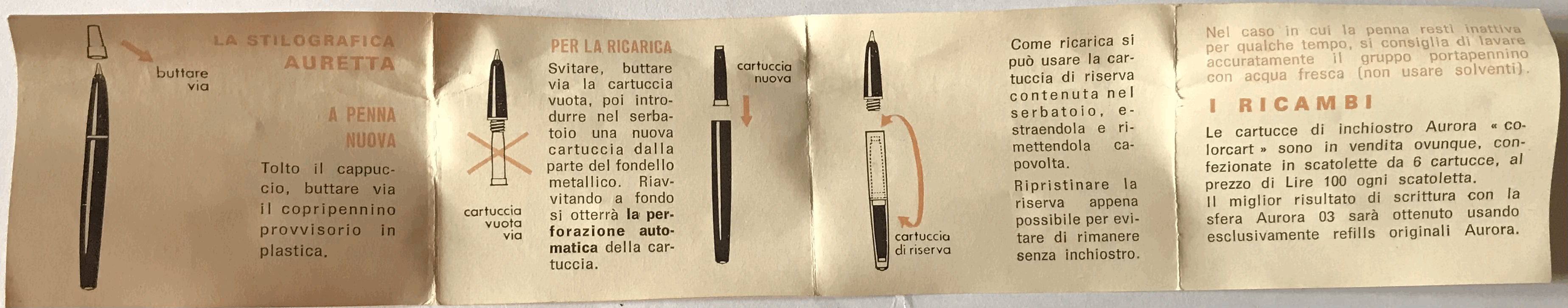 Chissà se qualche possessore di Auretta III serie (quella cilindrica con il pennino triangolare piatto) ... oppure di una Auretta IV serie (quella con corpo in plastica o metallo ed anelli a contrasto cromatico) vorrà aiutarci...