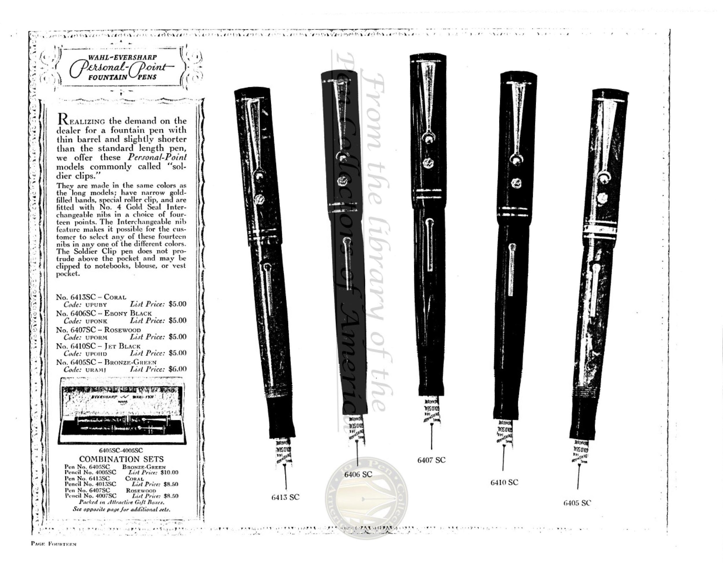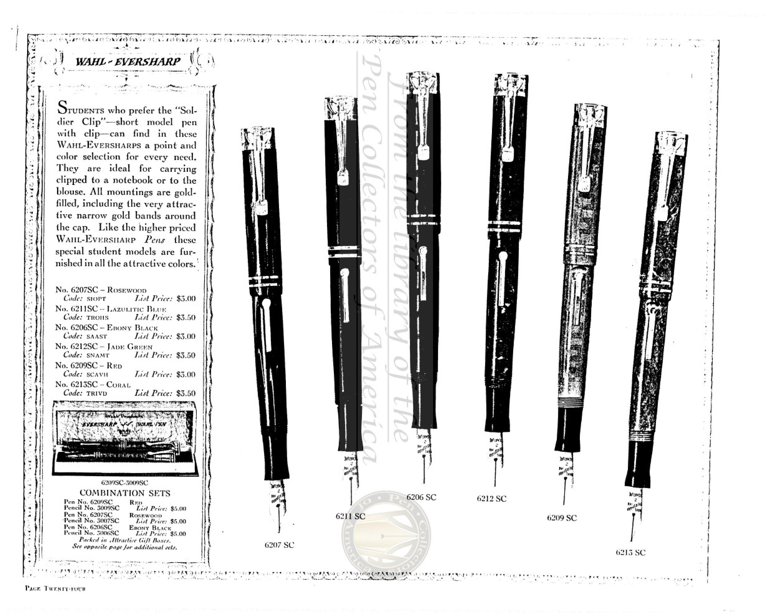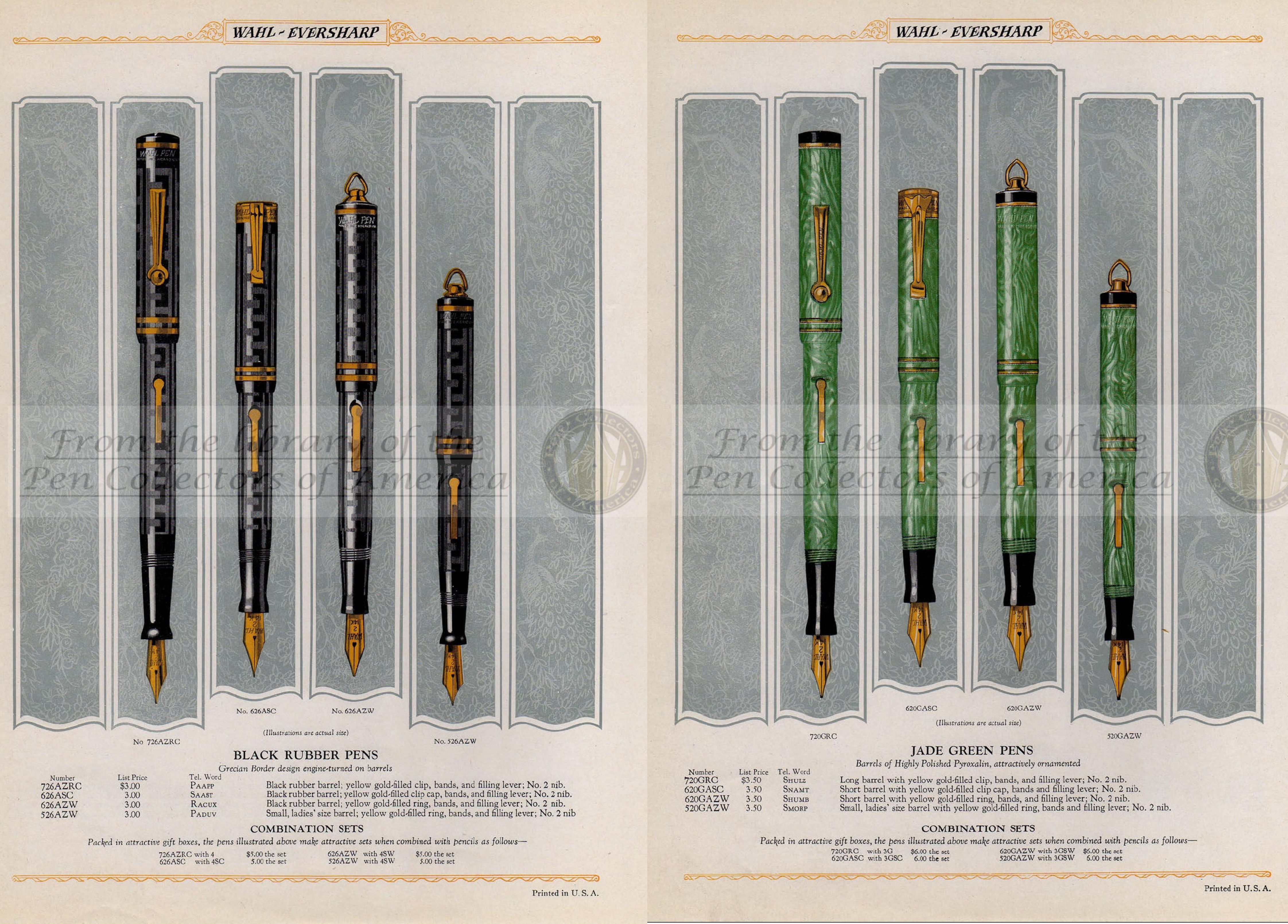 Catalogo Generale Wahl-Eversharp del 1929, ove vengono presentate fianco a fianco (pag.24 e 25) con nomi, codici e prezzi…